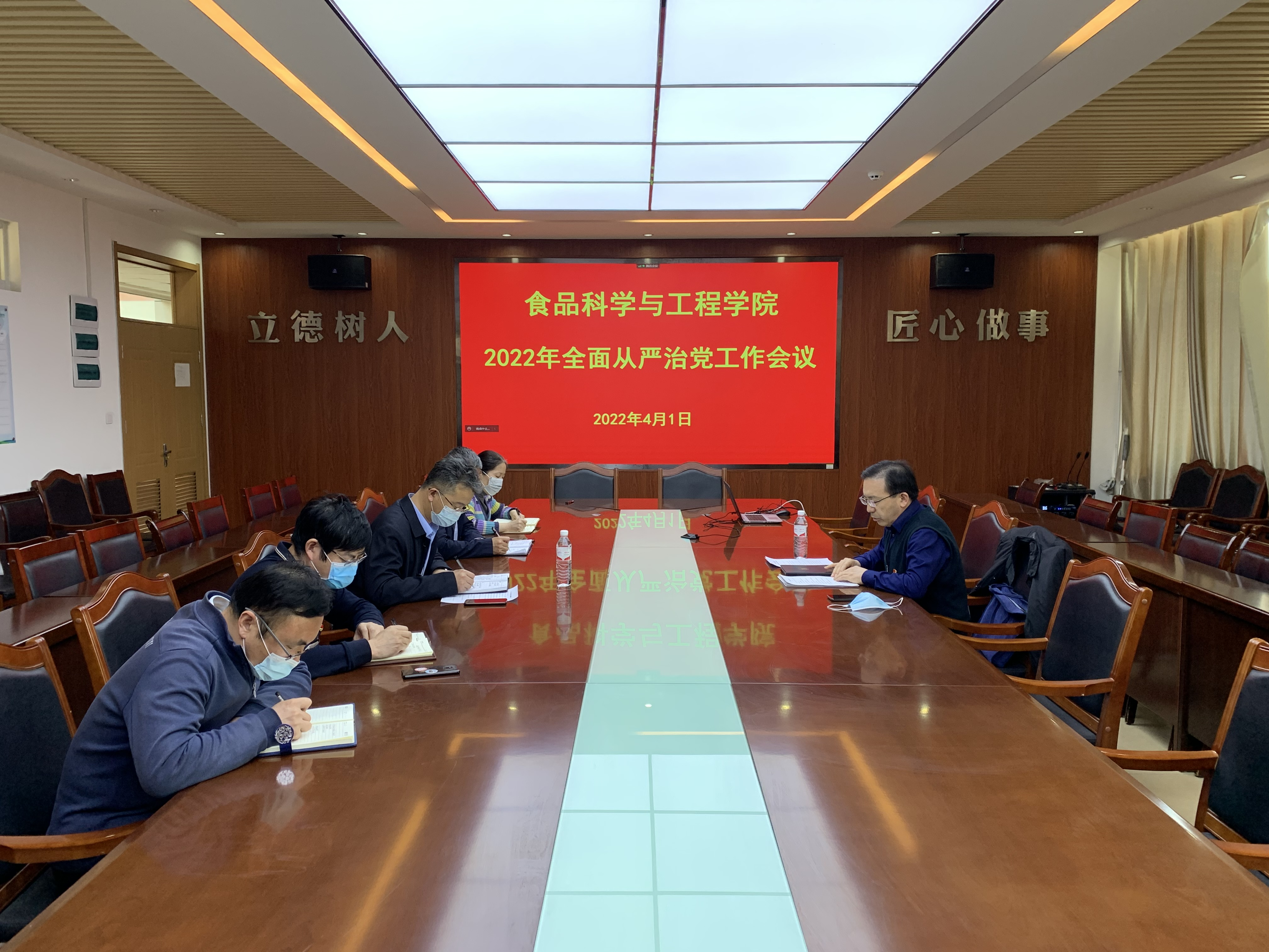 4月1日,tyc234cc 太阳成集团于食品楼召开全面从严治党工作会议。副校长赵金山出席会议并讲话,学院领导班子成员、科级以上干部参加会议。