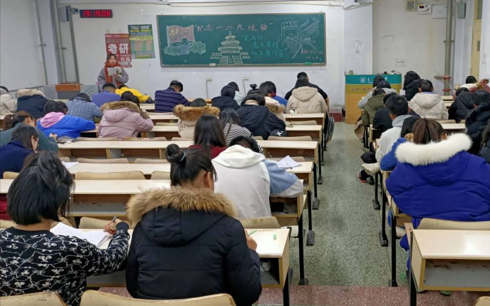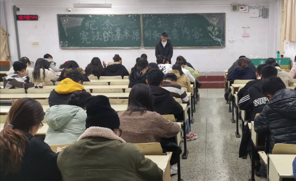 12月8日,tyc234cc 太阳成集团在教学区开展“纪念一二九运动”和“宪法的基本原则和主要内容”主题政治学习。2018级、2019级全体学生参与学习。