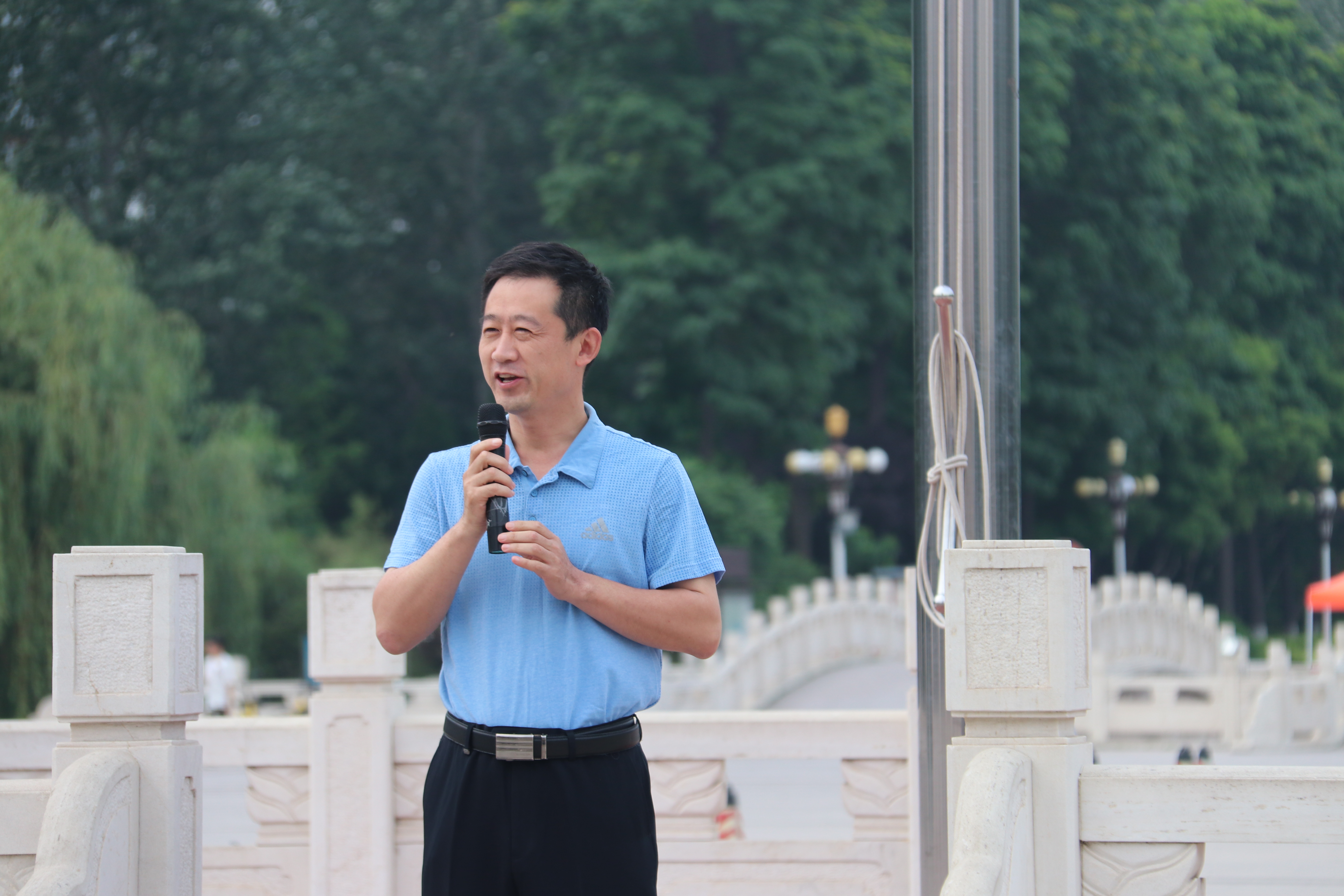 国旗护卫队在庄严的国歌声中昂首走来,五星红旗伴着朝阳冉冉升起。李永青进行国旗下讲话。李永青提出,为保证全国高考和上合峰会的顺利进行,学院将进一步加强对学生的管理。具体包含以下几个方面:一、严格请假制度。在高考和上合峰会期间,所有学生不允许请假,学校会加大课堂考勤和夜不归宿检查力度。二、加强纪律管理。严格的纪律是学院一切工作正常运行的保证,学院将进一步加强学生宿舍安全管理工作。三、积极准备考试。要以严肃认真的态度对待即将到来的考试,严禁考试作弊。并引用习近平主席"立鸿鹄志,做奋斗者"的话,表达了对学生全面发展的殷切期望。最后,宋伟强调希望学生们能够更加重视安全和请销假制度和网络语言规范。