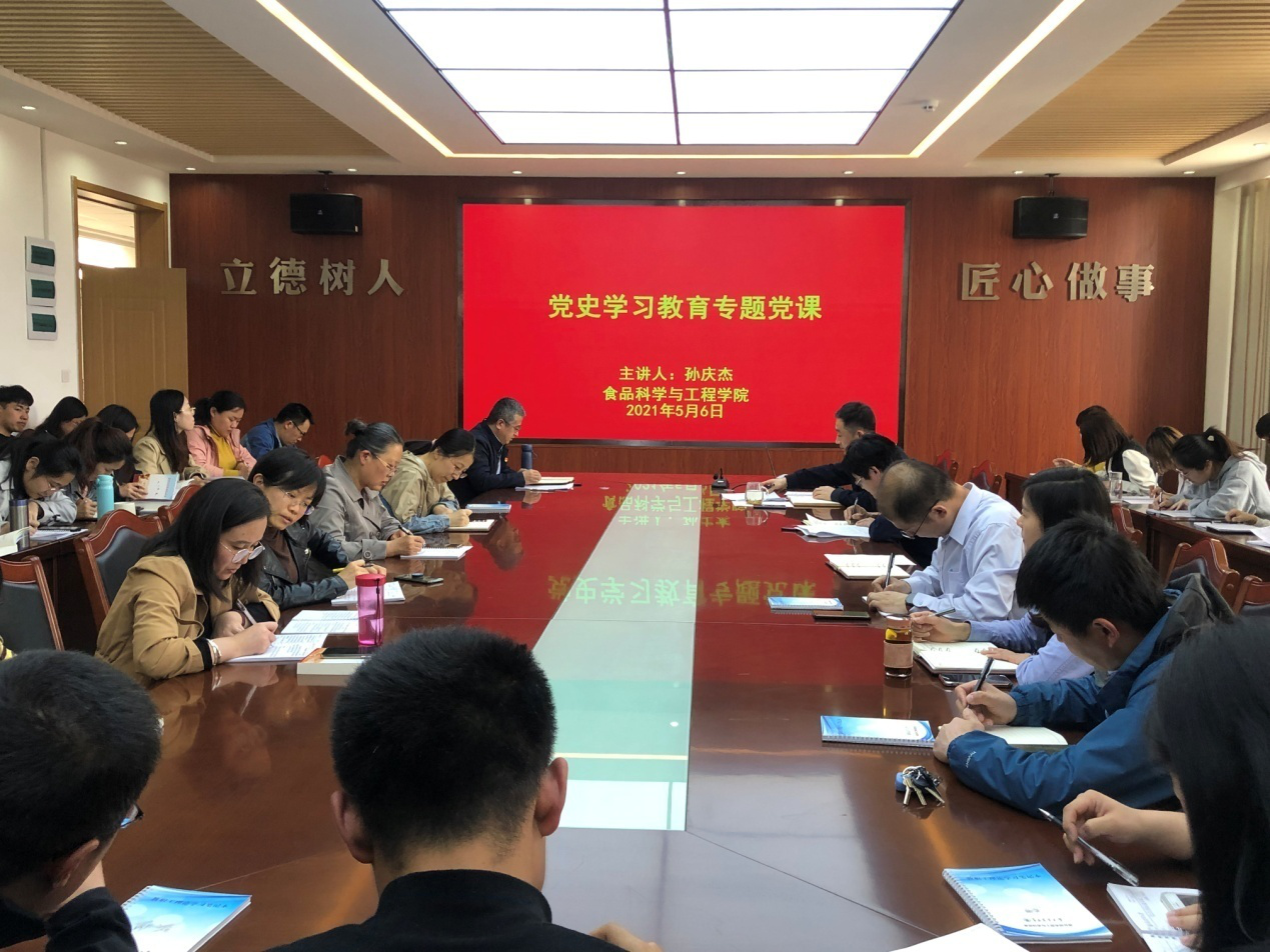 5月6日,tyc234cc 太阳成集团在食品楼会议室召开党史学习教育专题党课,学院院长孙庆杰担任主讲人,学院全体师生党员参加,会议由学院党委书记宋伟主持。