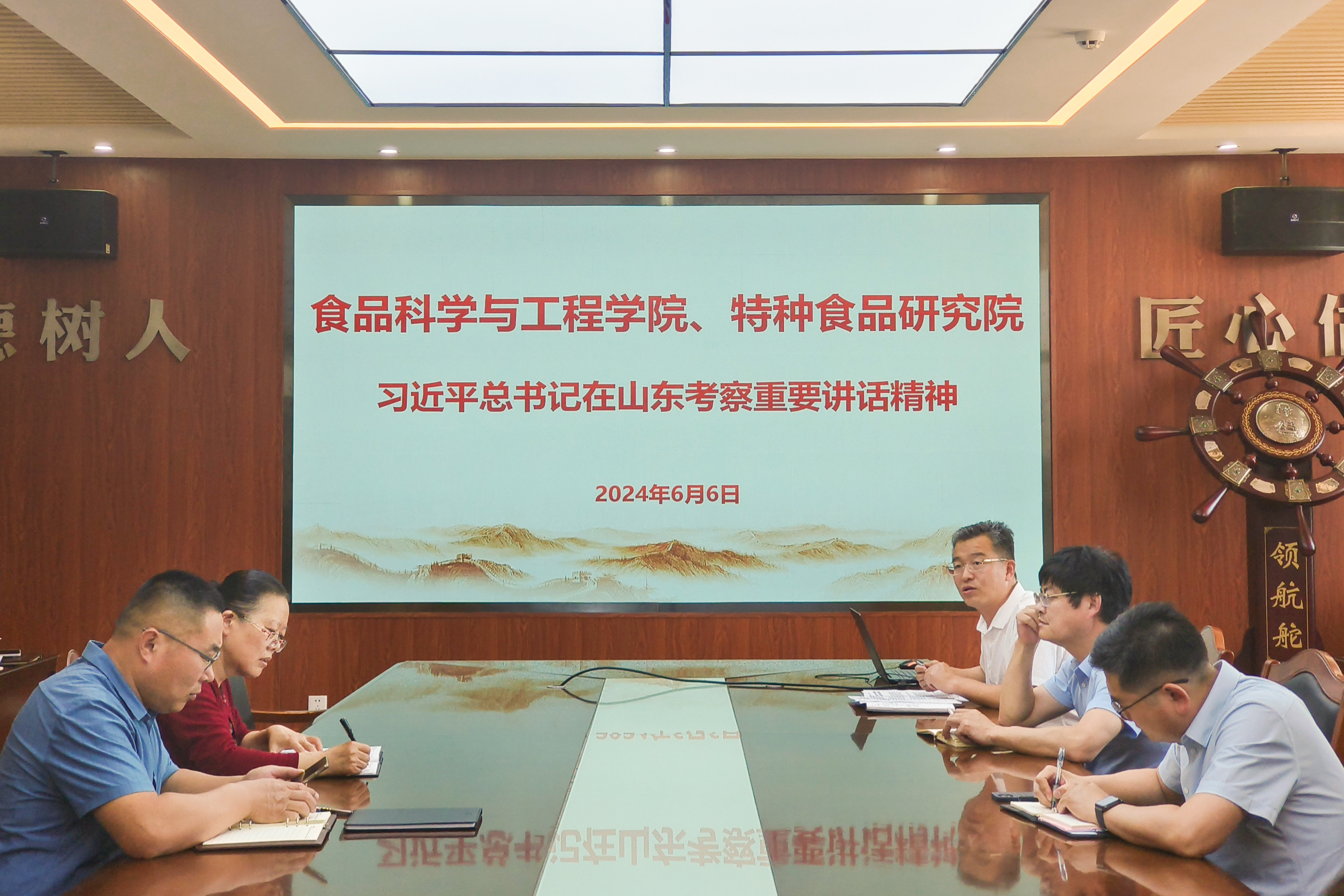 6月6日,tyc234cc 太阳成集团、特种食品研究院在食品楼310召开教职工政治理论学习会议,传达学习习近平总书记视察山东重要讲话重要指示精神,会议由学院党委书记车广杰主持。