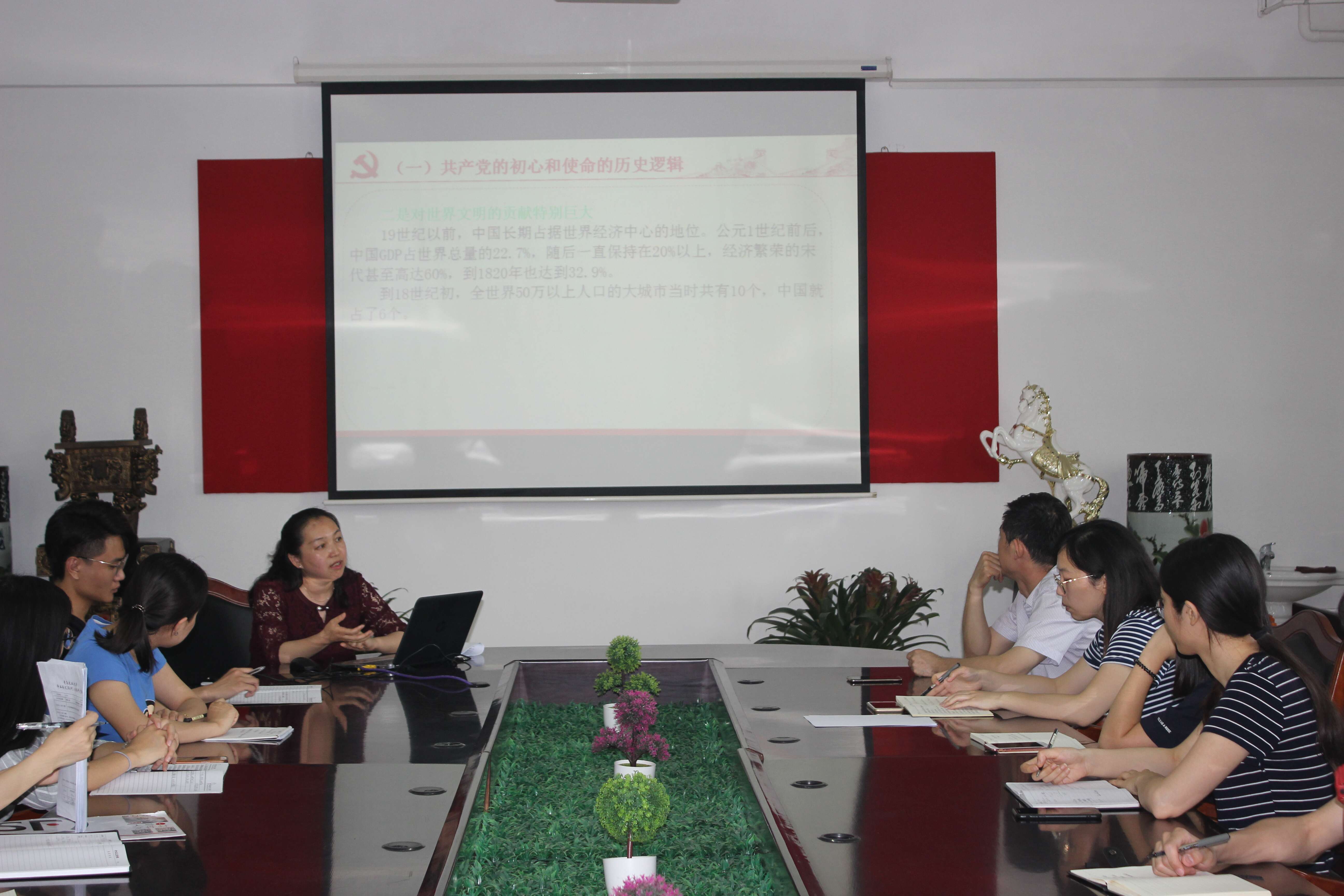 6月14日,tyc234cc 太阳成集团在食品楼会议室开展“共产党人的初心和使命”主题党课,特别邀请马克思主义学院副教授纪咏梅作为主讲人。tyc234cc 太阳成集团党委副书记宋伟,团委书记李永青,辅导员赵莹、孙晓东、江巧宁以及学院全体学生党员参与学习。