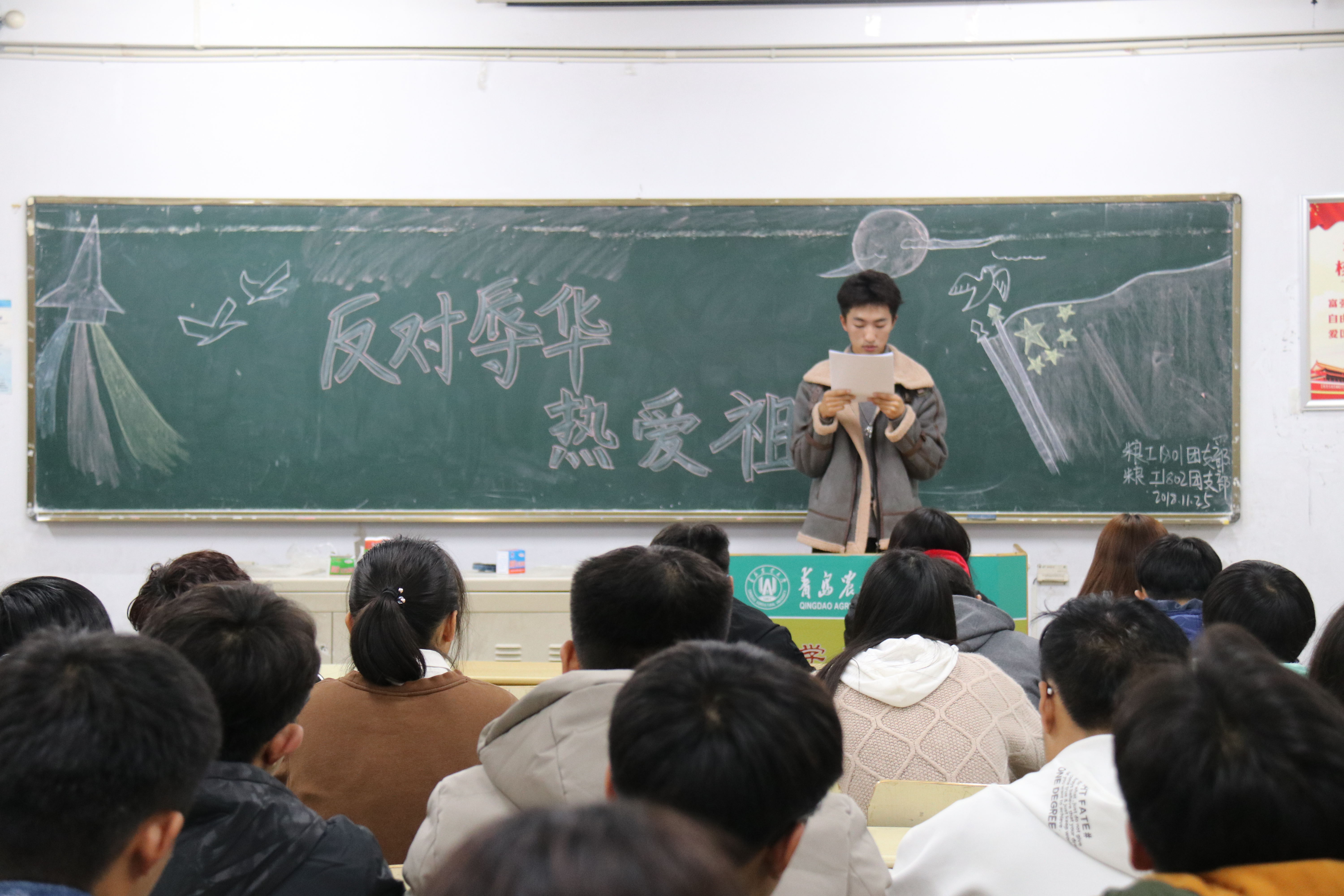 11月25日,tyc234cc 太阳成集团在教学区开展“爱国教育”主题政治学习。学院2018、2017级全体学生参与了此次学习。