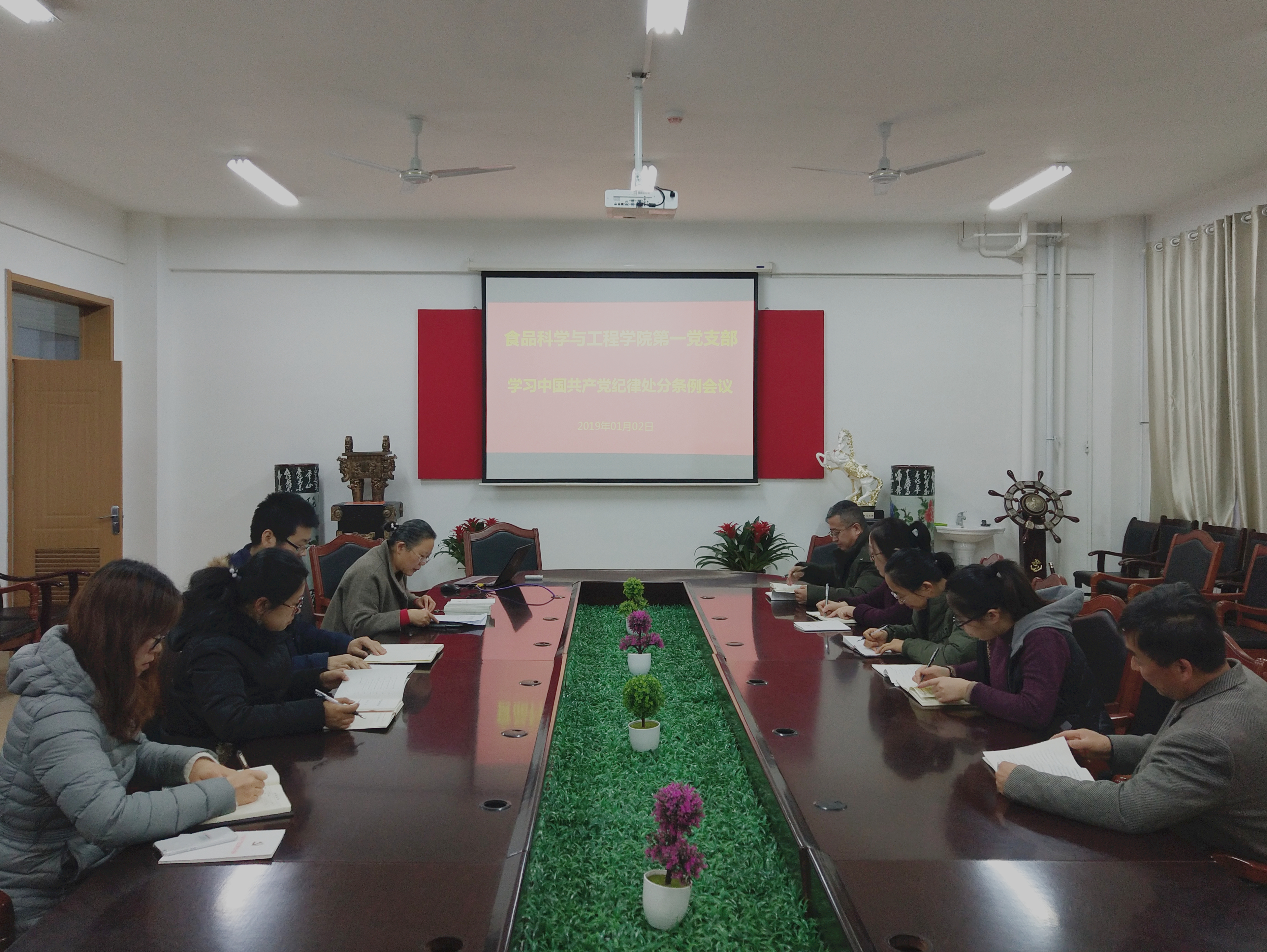 1月2日,tyc234cc 太阳成集团各党支部开展主题党日活动,结合《关于进一步严明2019年元旦春节期间纪律要求的通知》(青农大纪字[2018]18号)要求,组织党员再次学习了新修订《中国共产党纪律处分条例》。