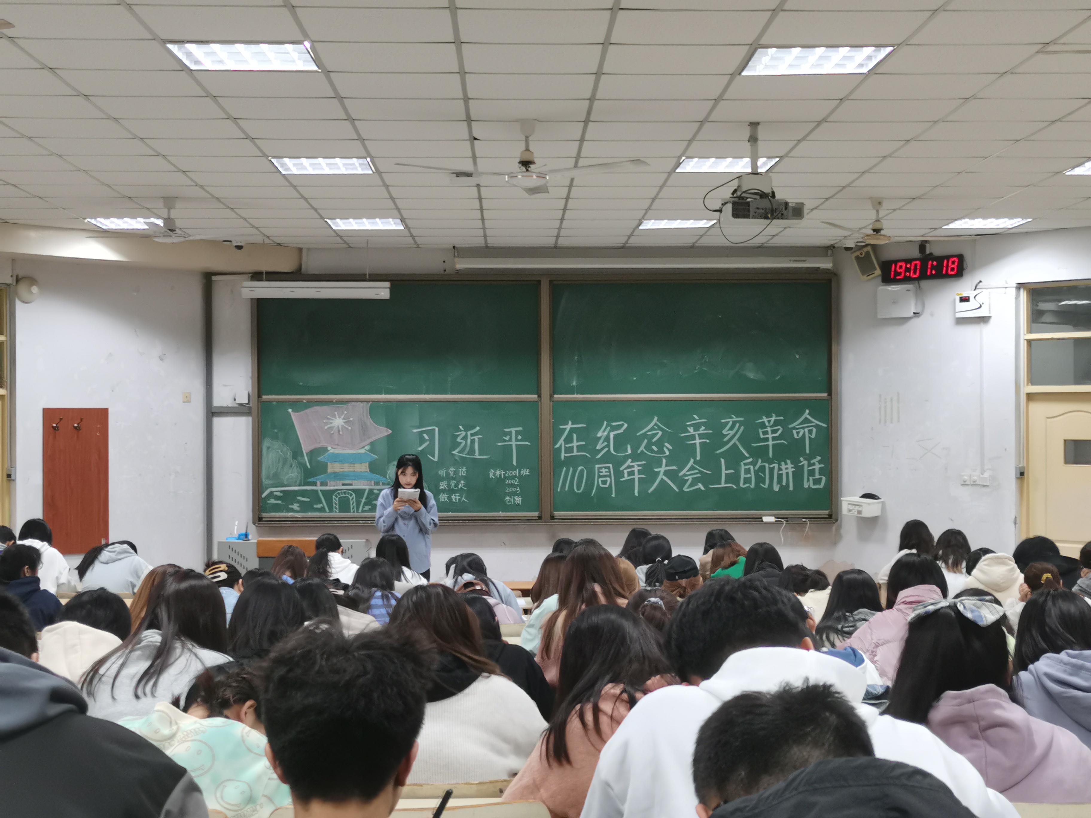 为缅怀孙中山先生等革命先驱的历史功勋,10月17日,tyc234cc 太阳成集团在教学区开展“习近平:在纪念辛亥革命110周年大会上的讲话”主题政治学习。学院2020级全体学生积极参加。