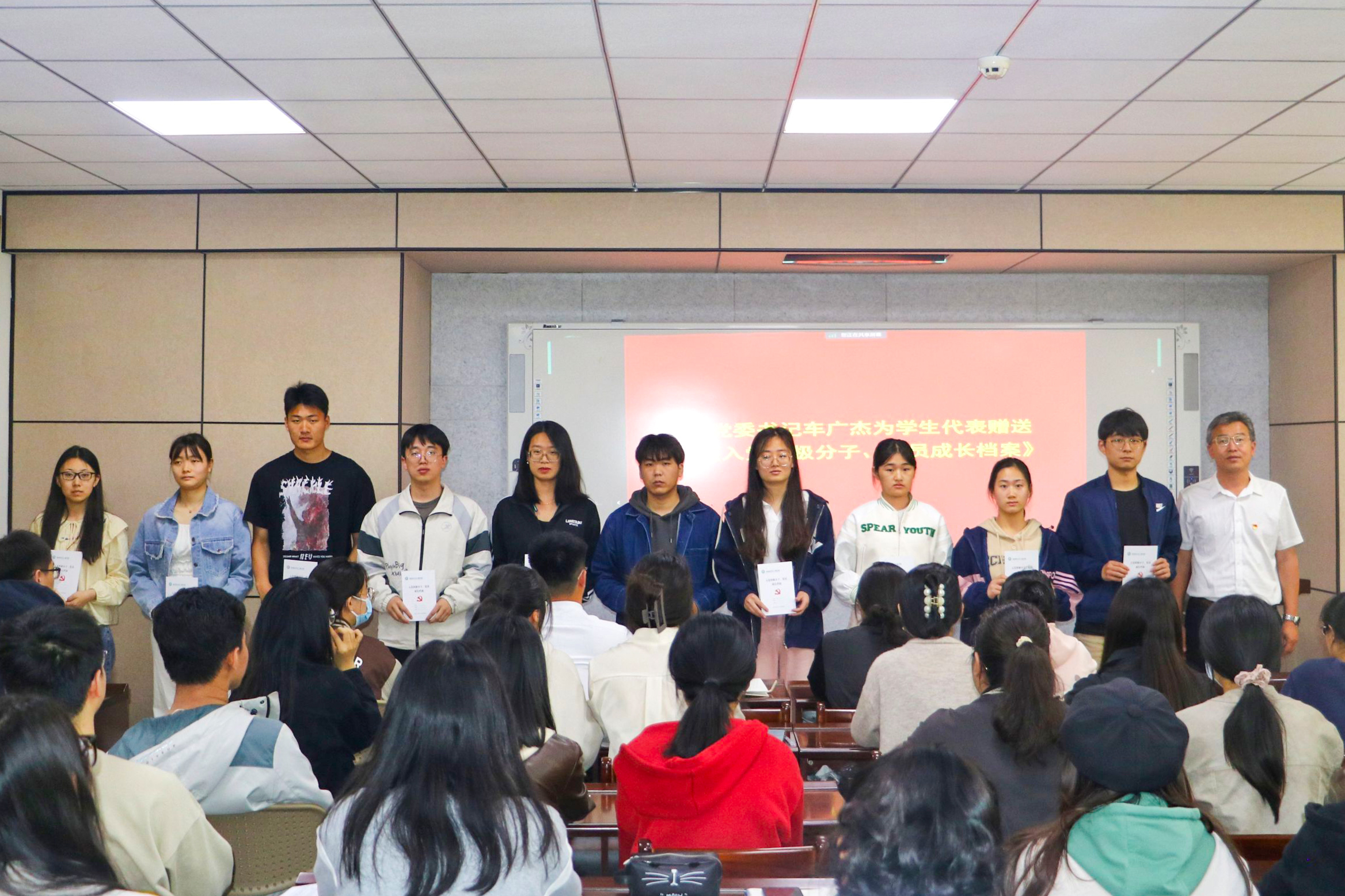 仪式上,车广杰还为学生代表发放了学院制作的“入党积极分子、党员成长档案”。为创新党员教育管理方式、不断增强党员队伍活力,从本学期开始,tyc234cc 太阳成集团探索推行“入党积极分子、党员成长档案”,档案从确立入党积极分子到毕业,详细、及时记录入党积极分子、预备党员和正式党员在日常学习、生活、工作等方方面面的现实表现情况,既有正面表现,也有负面记录,以此,既让每名入党积极分子、党员能时时了解自己的成长历程,也能相互比较,做到纵向找差距、横向找问题,有效激励大家对标先进切实发挥先锋模范作用。此外,通过成长档案,加强党员成长过程的动态跟踪管理,实现党员发挥作用有记录、参加组织生活有痕迹、年底评议有依据,切实提升党员管理精准化、规范化水平。