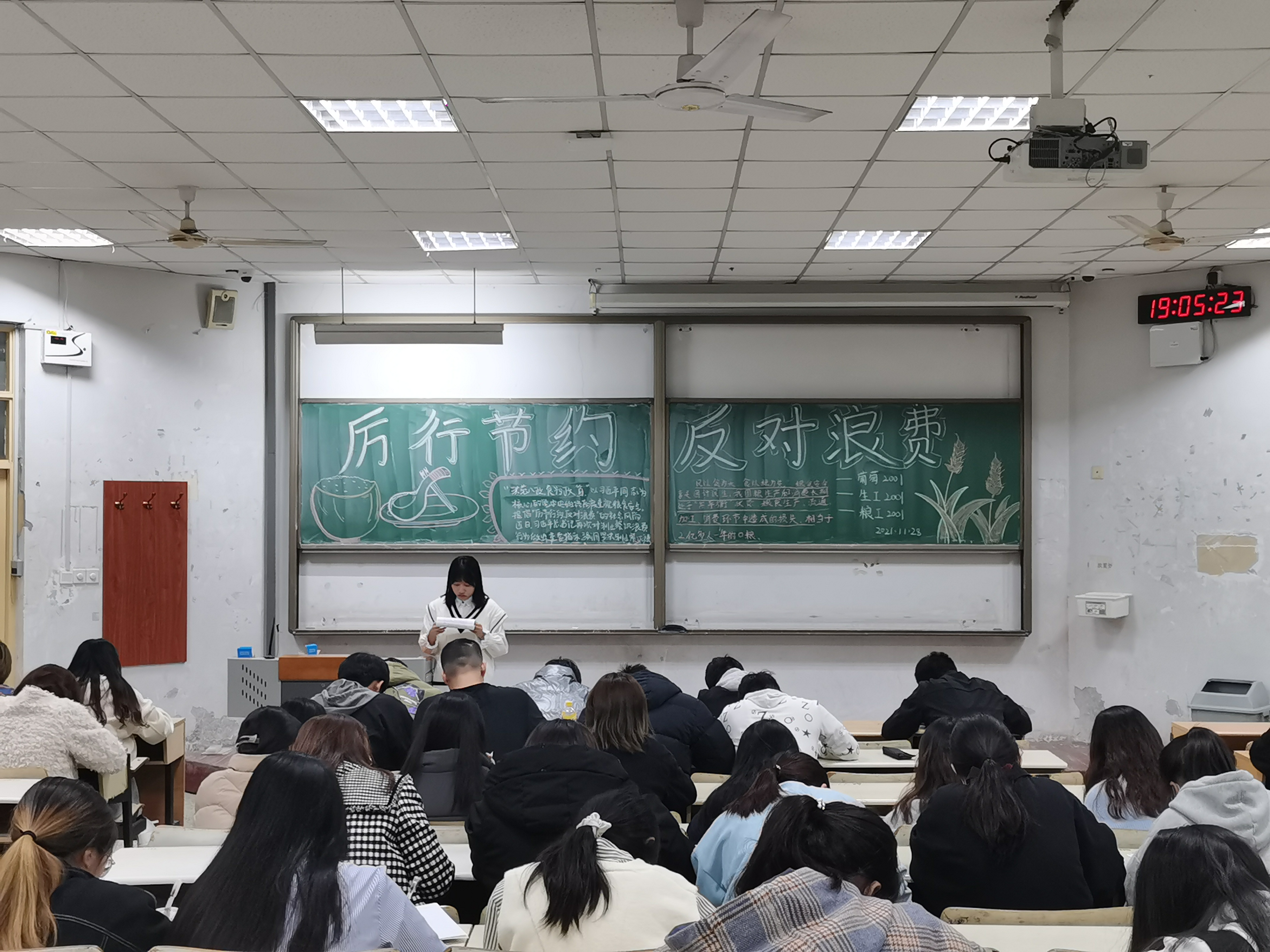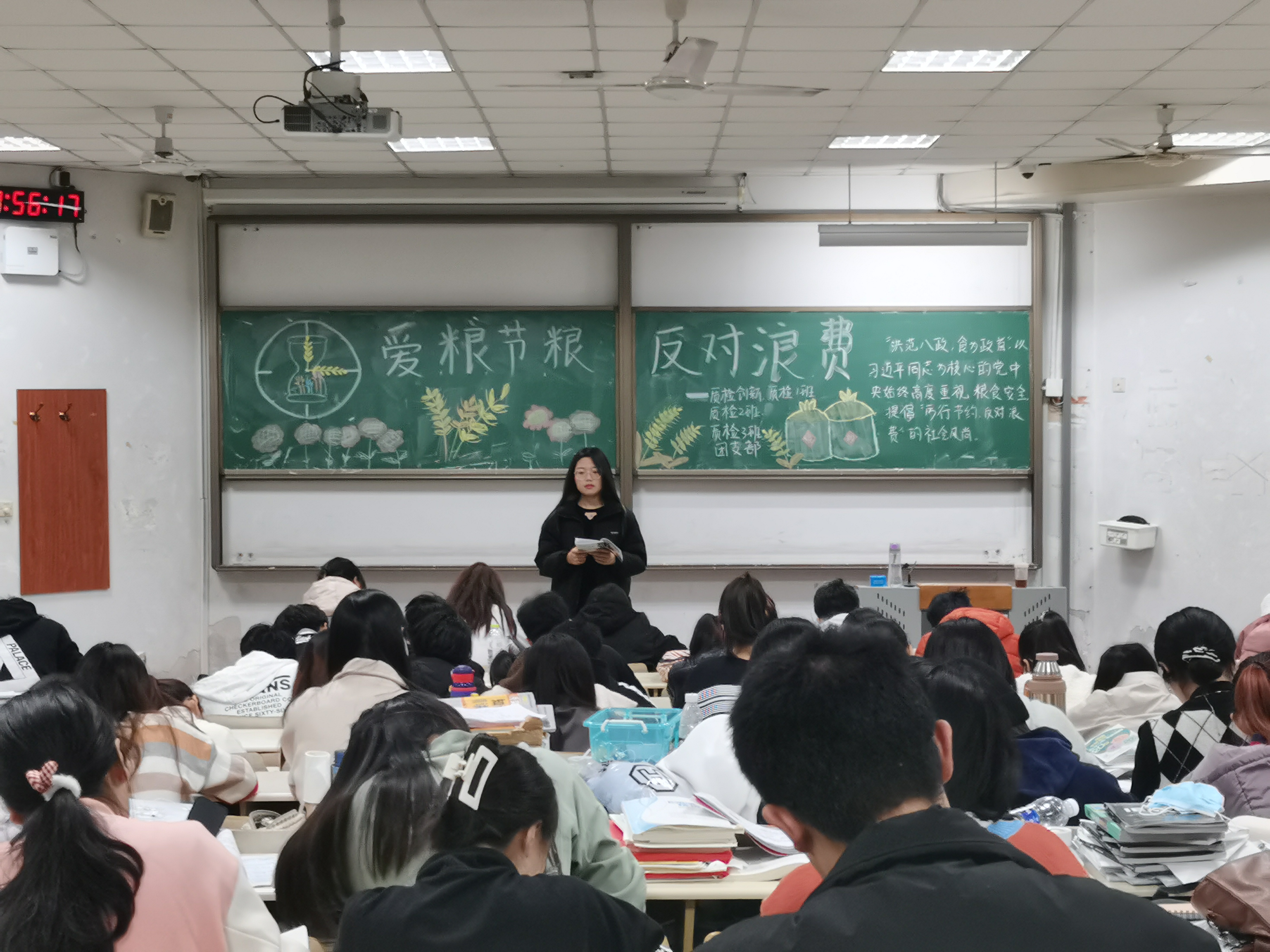 在本次政治学习过程中,各班主讲人以中国粮食生产和消费处于“紧平衡”状态为切入点,向同学们传达了拒绝餐饮浪费的思想。葡萄2001班主讲人柳丽萍讲到:推崇节约,反对浪费一直是中华民族的传统美德,同时呼吁同学们要树立“节约光荣,浪费可耻”的意识,在生活中养成“吃多少拿多少”的习惯,营造爱粮节粮的氛围,争做新时代勤俭节约的传承者。