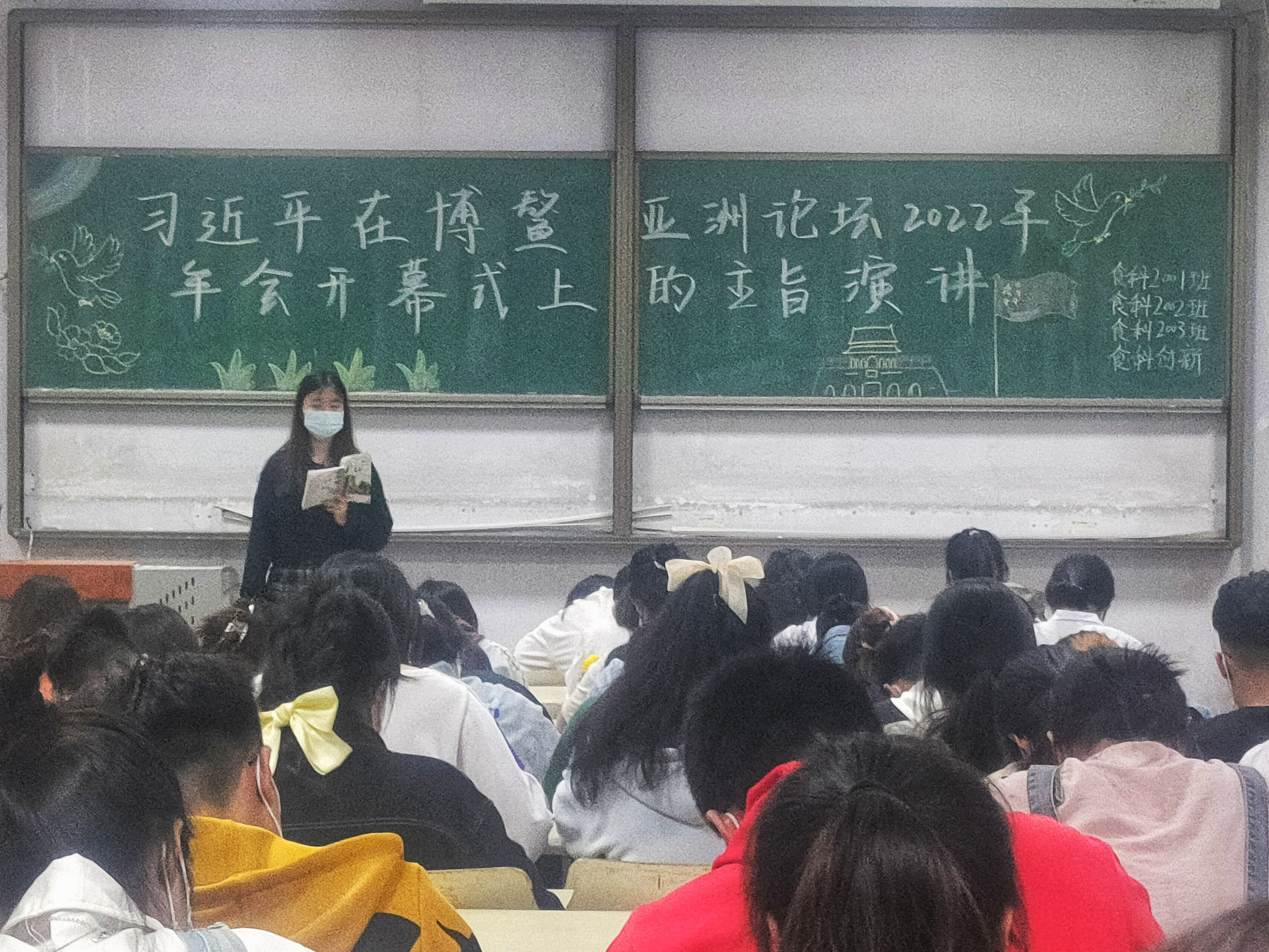4月24日,tyc234cc 太阳成集团在教学楼开展“习近平在博鳌亚洲论坛2022年年会开幕式上的主旨演讲”主题政治学习。学院2020级、2021级全体学生积极参加。