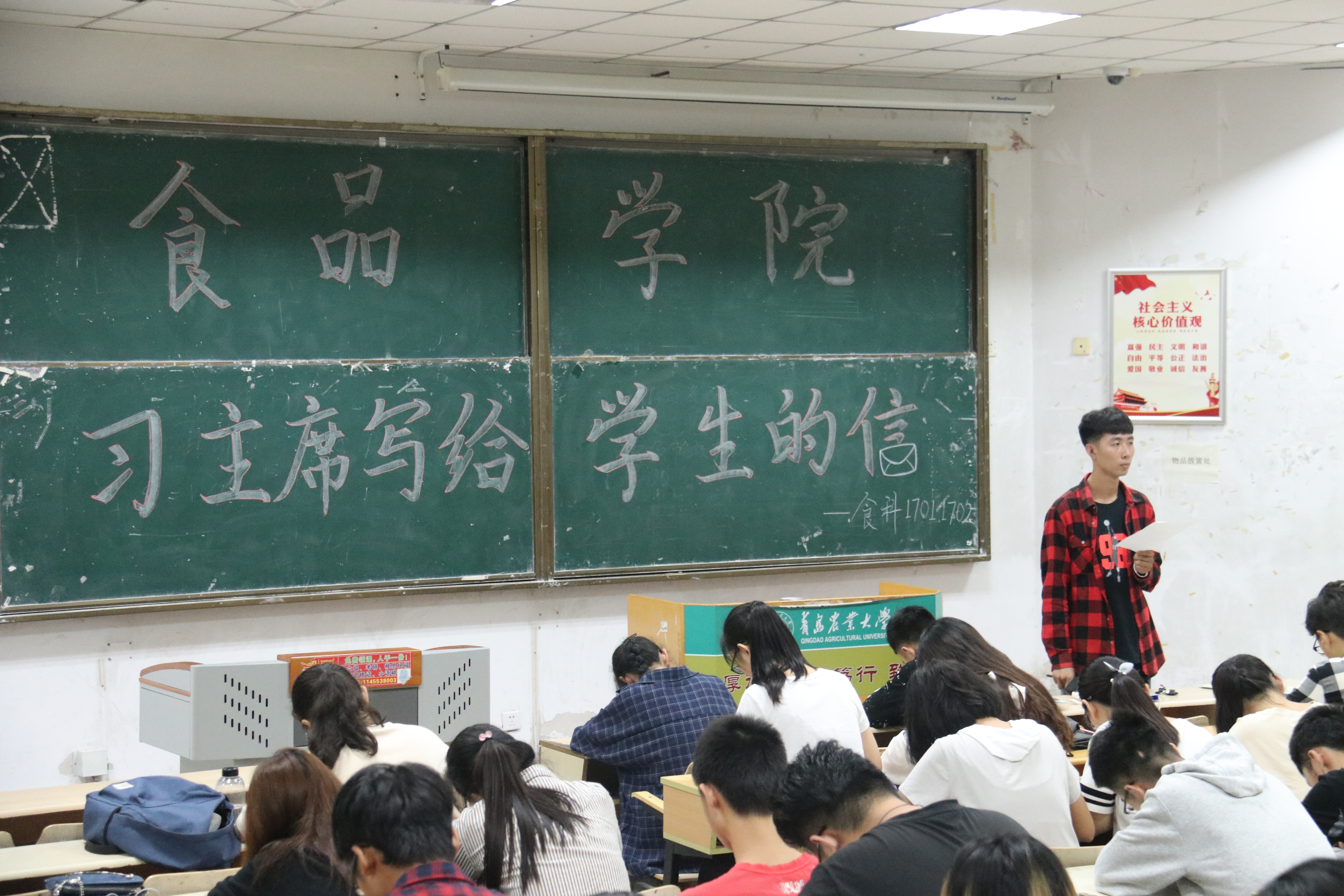 课上,各班主讲人带领学生深度学习习近平总书记写给学生们的那些信,传递了习近平对学生们成长成材的殷切期望。在习近平写给莫斯科大学的中国留学生的信中提到,青年一代有理想、有本领、有担当,国家就有前途,民族就有希望。实现中华民族伟大复兴的中国梦,离不开一代代青年的接力奋斗。激励学生们热爱党、热爱祖国、热爱人民,努力成长为有知识、有品德、有作为的新一代社会主义建设者。