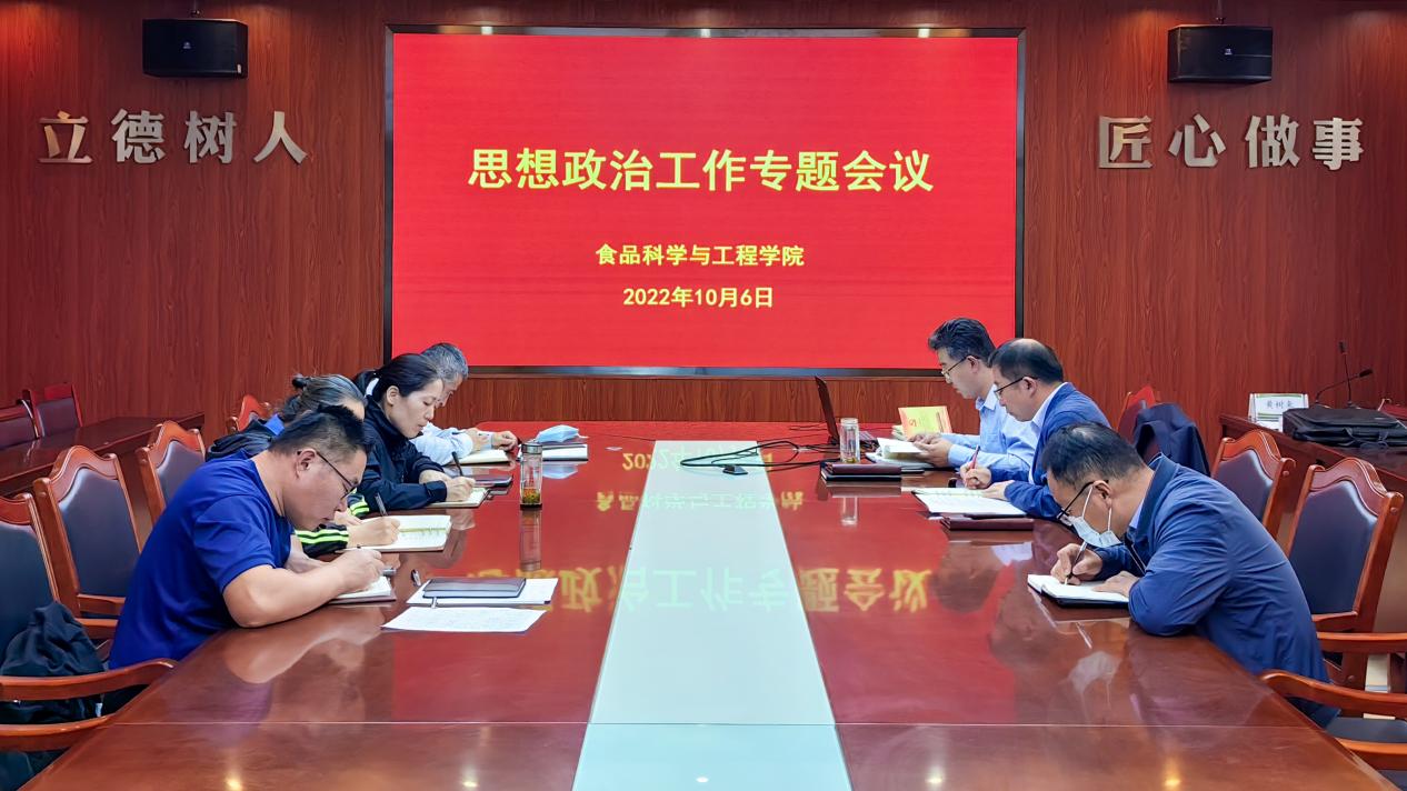 10月6日,tyc234cc 太阳成集团党委召开思想政治工作专题会议,学院党委班子成员、专职组织员、全体辅导员参加会议,会议由学院党委书记车广杰主持。
