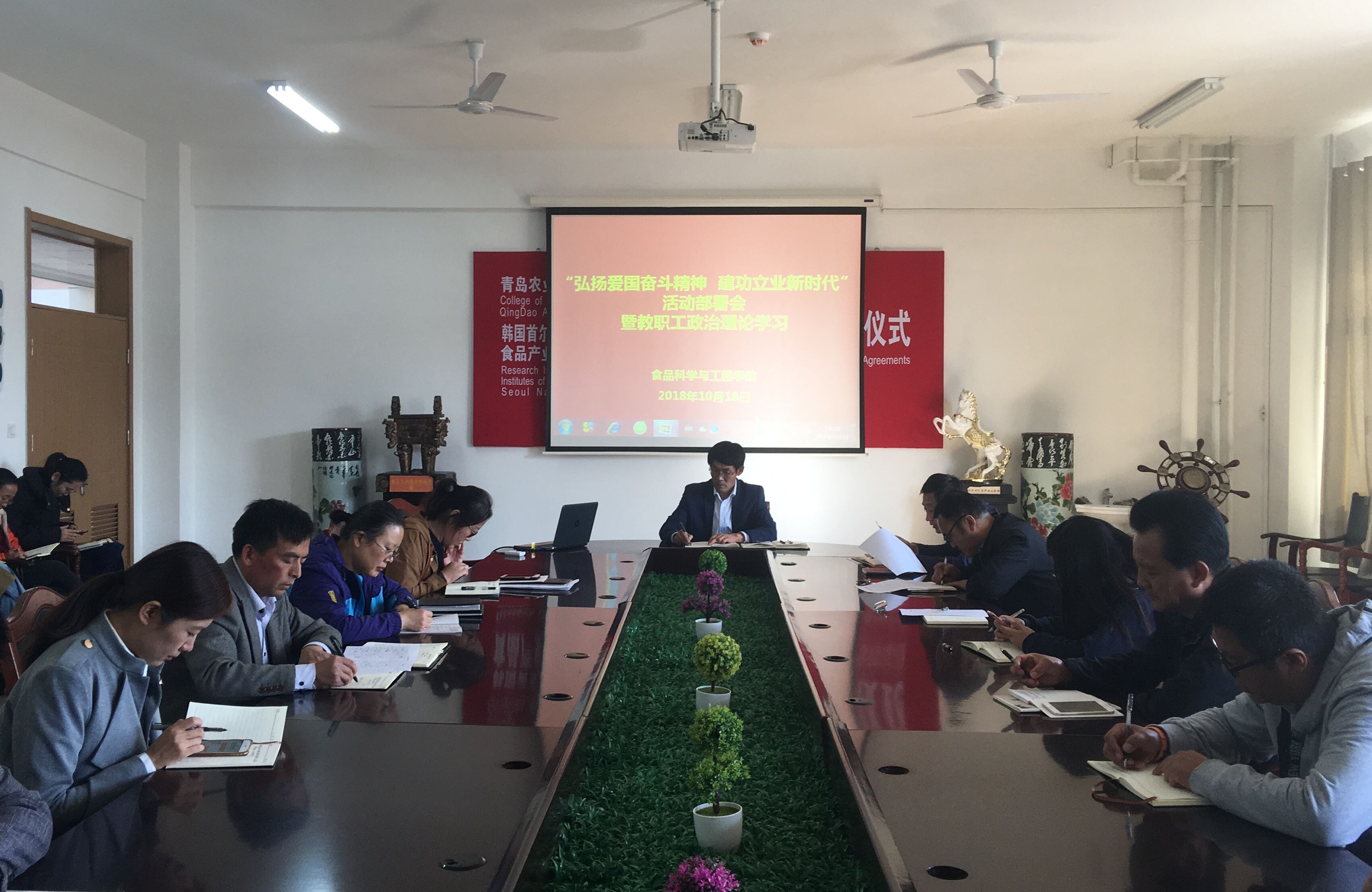 10月18日,tyc234cc 太阳成集团在食品楼310会议室举行“弘扬爱国奋斗精神 建功立业新时代”活动部署会暨教职工政治理论学习。会议由学院党委书记何忠诚主持。