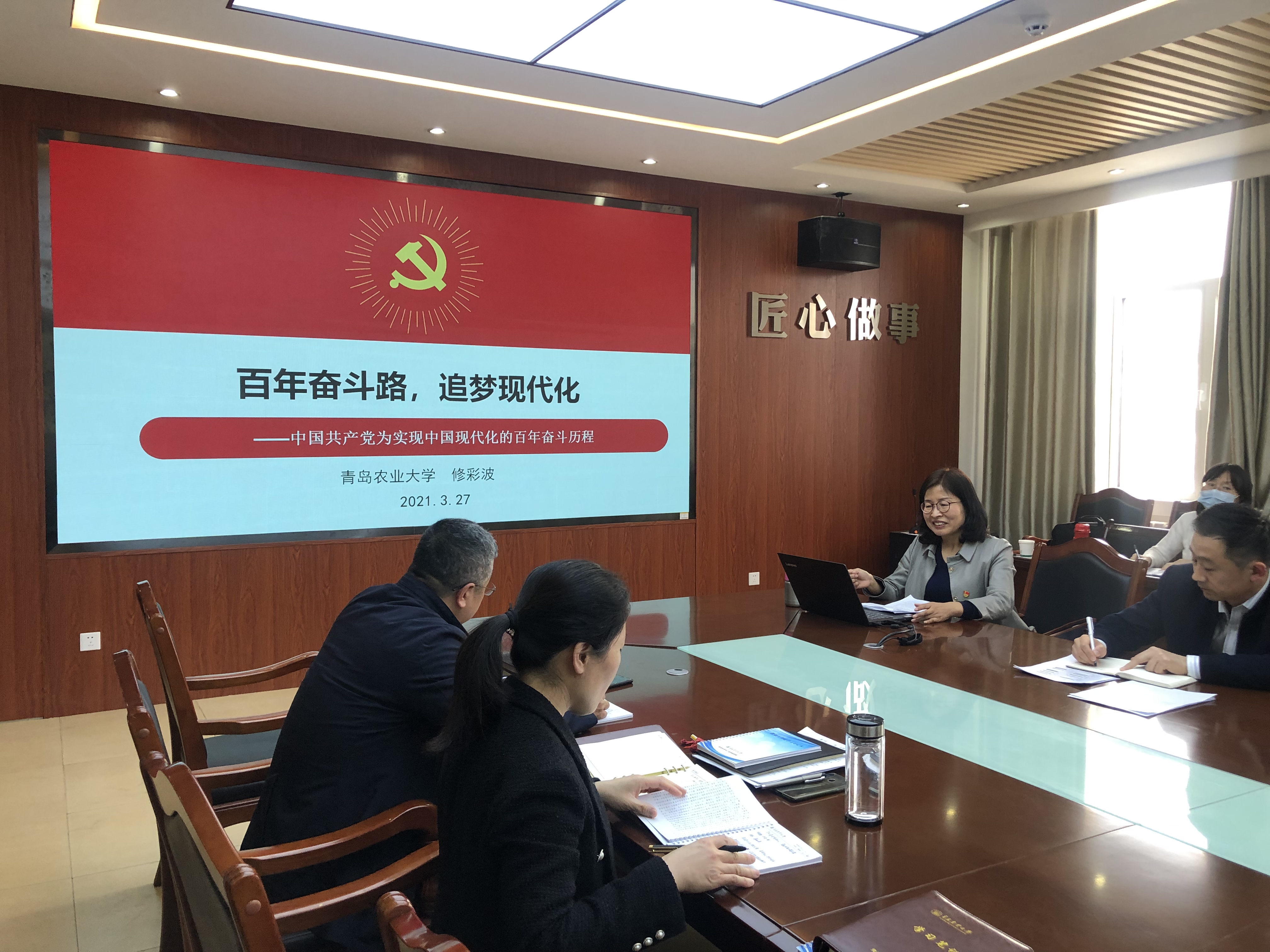 4月1日,tyc234cc 太阳成集团在食品楼会议室举办党史学习教育专题报告,邀请马克思主义学院党委书记修彩波作为主讲人。学院全体教职工参加。报告会由学院党委书记宋伟主持。