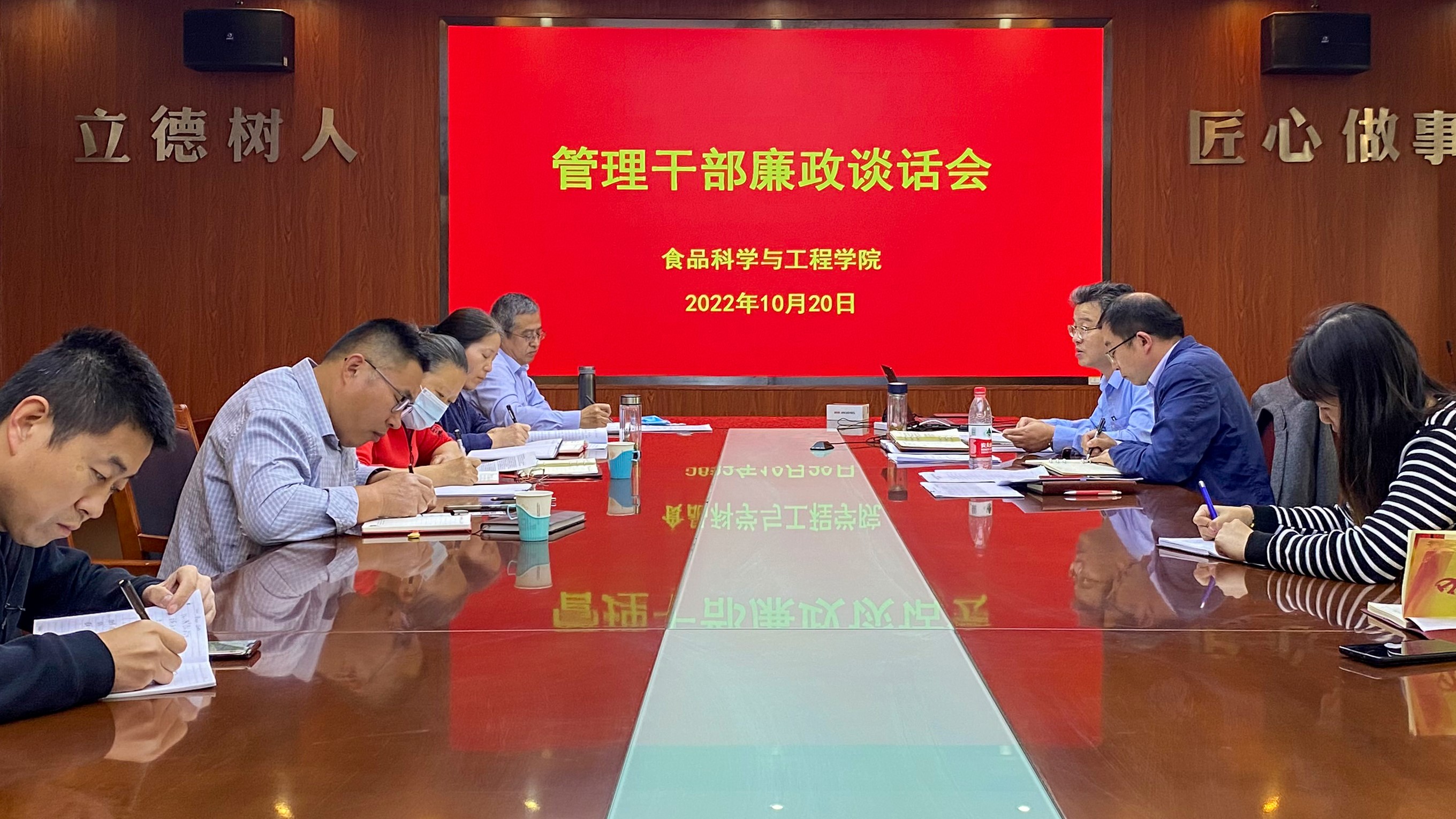 10月20日,tyc234cc 太阳成集团在食品楼310召开管理干部廉政谈话会。学院党委班子成员、科级干部、全体辅导员参加会议,会议由党委书记车广杰主持。