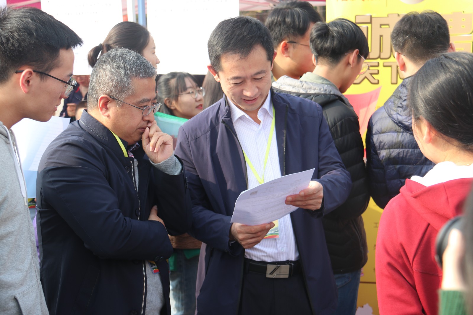 11月9日,tyc234cc 太阳成集团2020届毕业生秋季供需见面会顺利举行。tyc234cc 太阳成集团副院长孙庆杰、党委副书记宋伟、副院长陈海华、学工办成员以及毕业班班主任走进招聘会现场,了解招聘单位用人需求,指导毕业生就业。