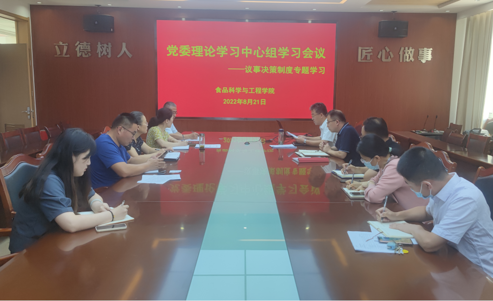 8月21日,tyc234cc 太阳成集团召开党委理论学习中心组学习(扩大)会议,专题学习学院议事决策制度。学院党委领导班子成员、科级干部参加学习,会议由学院党委书记车广杰主持。