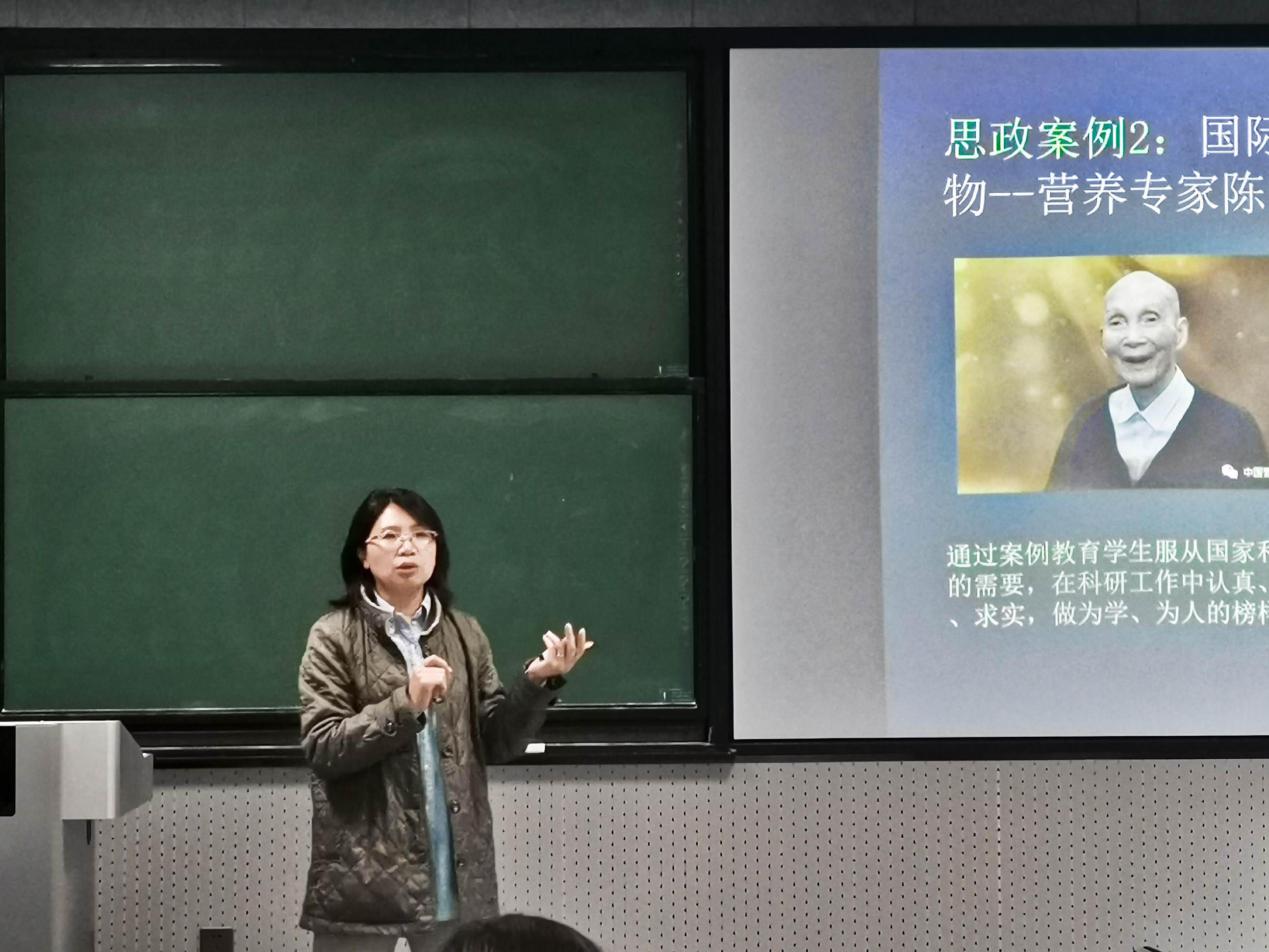 肖军霞强调,教育部印发了《高等学校课程思政建设指导纲领》,学校和学院高度重视学生思想立德树人政治工作,课堂教学是育人窗口,在食品专业课程教学当中,更要注重挖掘思政元素,她还引用习近平总书记“好的思想政治工作像盐,但不能光放盐,最好的方式是将盐溶解到各种食物中,自然而然的吸收”的比喻,形象概括了思想政治工作和课堂教学的关系。