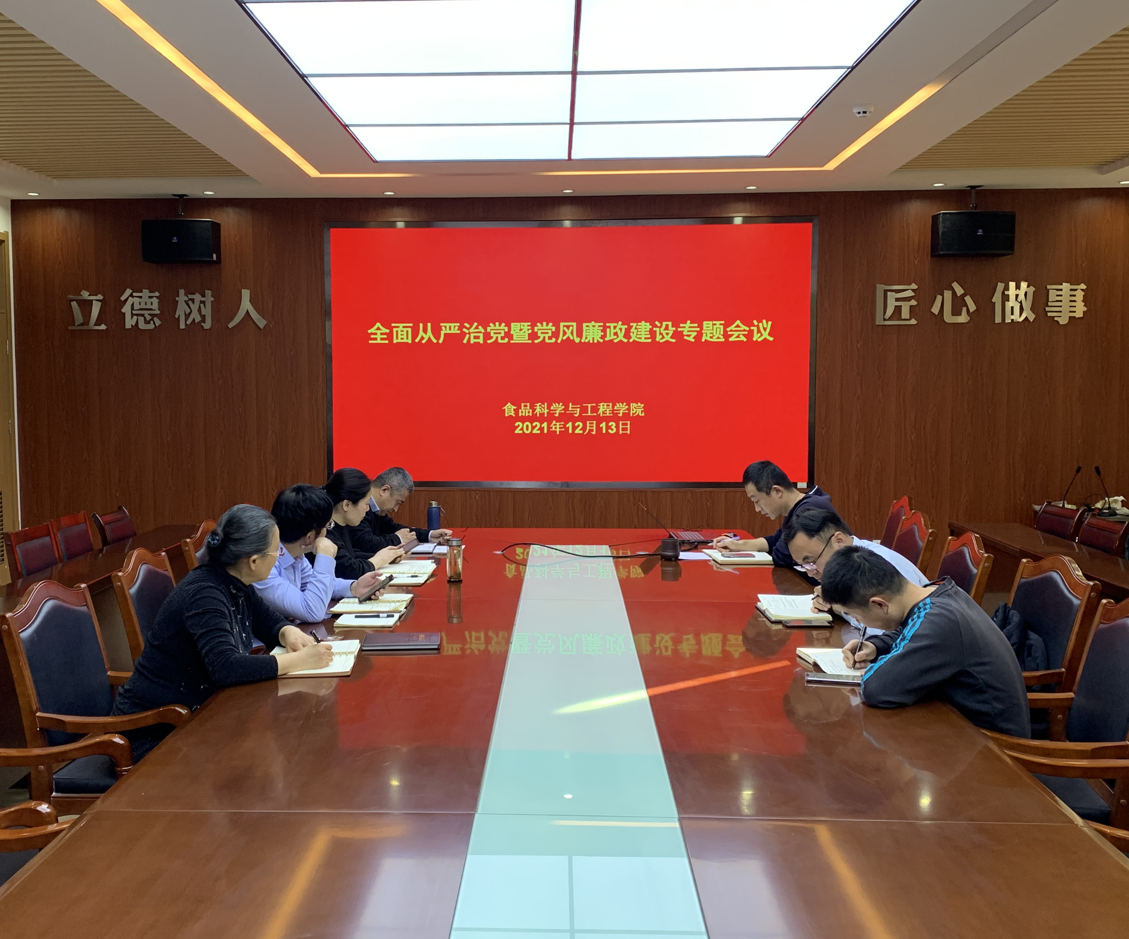 12月13日,tyc234cc 太阳成集团于食品楼会议室召开全面从严治党暨党风廉政建设专题会议。会议由党委书记宋伟主持,学院党政领导班子成员参加会议。