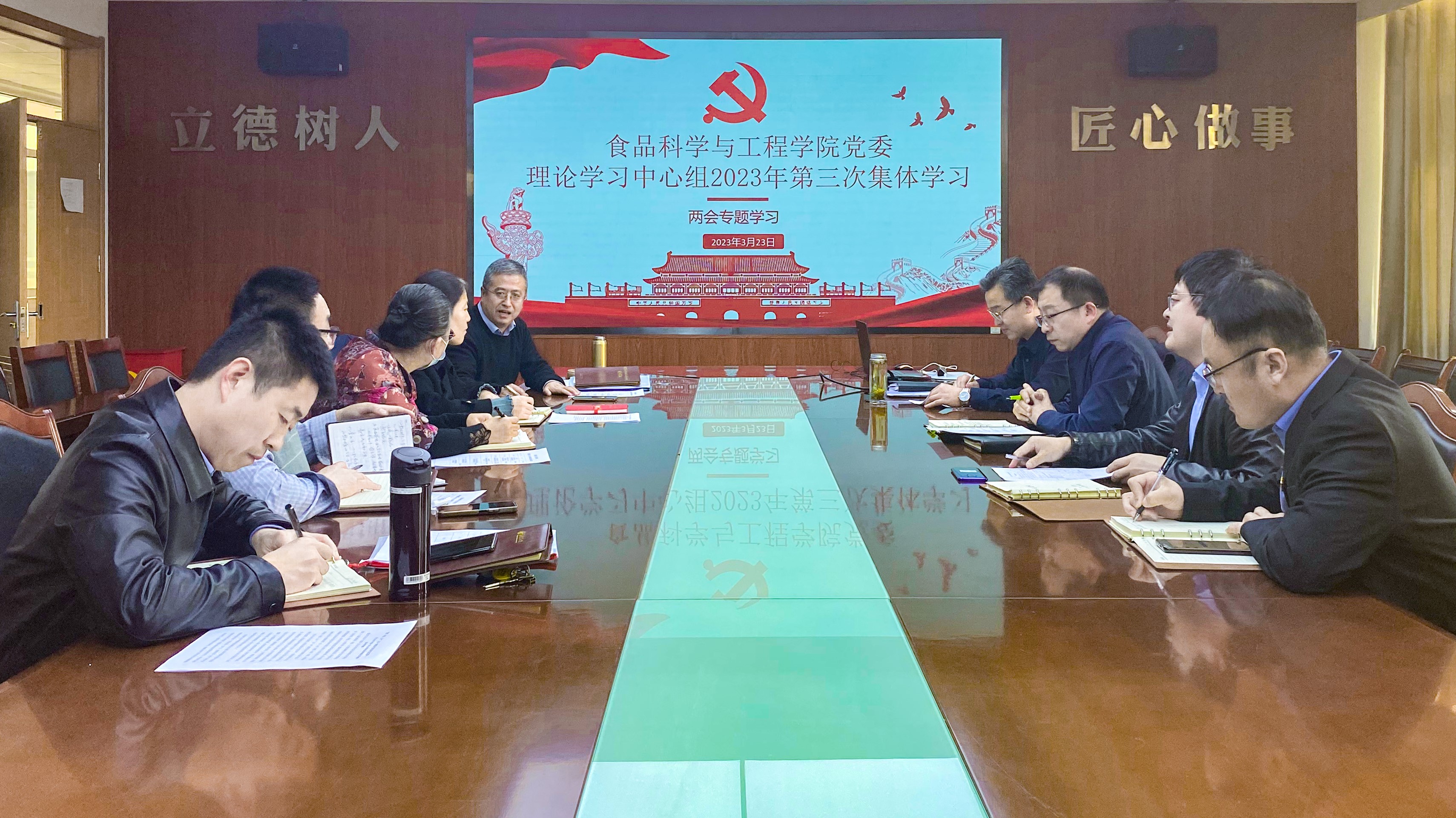 3月23日,tyc234cc 太阳成集团党委理论学习中心组举行2023年第三次集体学习,专题学习习近平总书记在全国两会期间发表的重要讲话精神及全国两会精神。党委书记车广杰主持会议。
