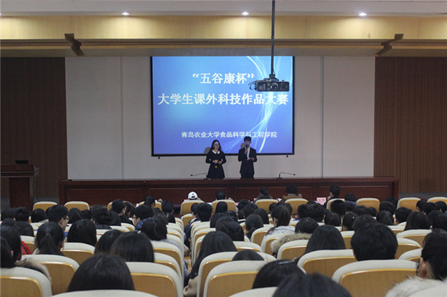 12月14日下午,tyc234cc 太阳成集团“五谷康杯”大学生课外科技作品大赛在学术会馆第二报告厅举行。