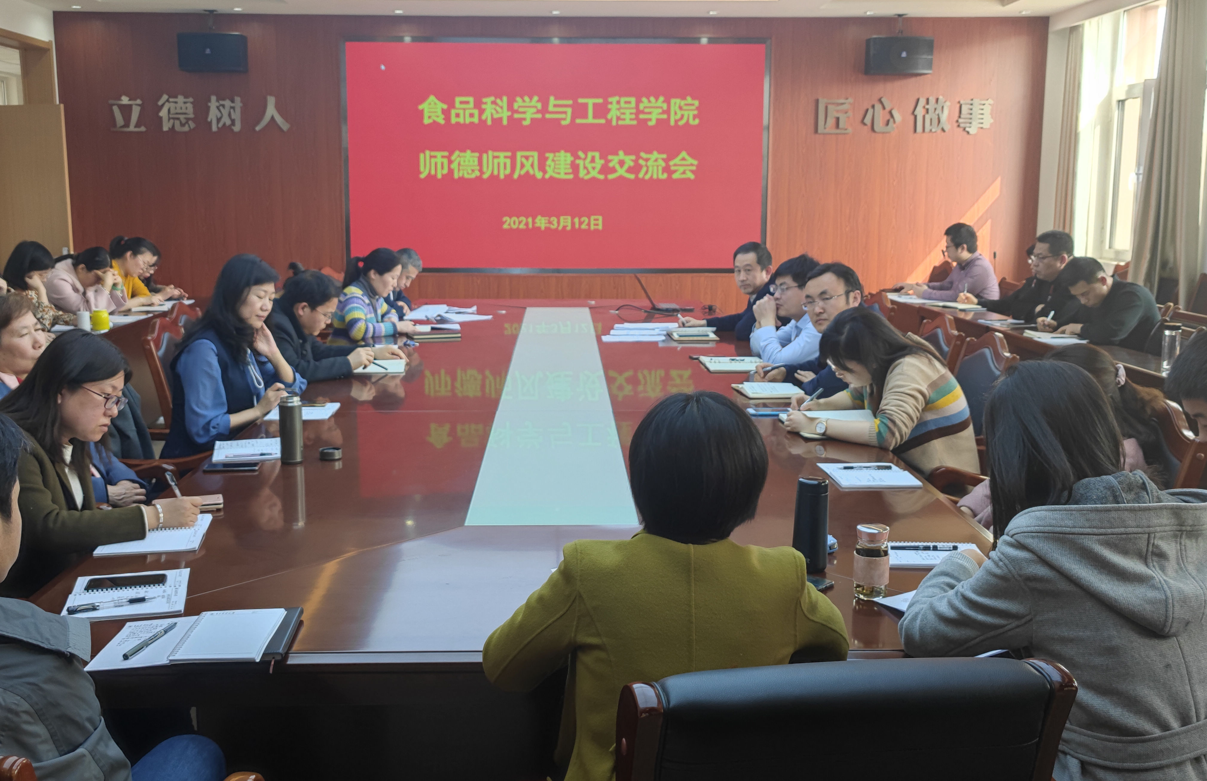 3月12日,tyc234cc 太阳成集团在食品楼会议室召开师德师风建设交流会。学院全体教职工参加。会议由学院党委书记宋伟主持。