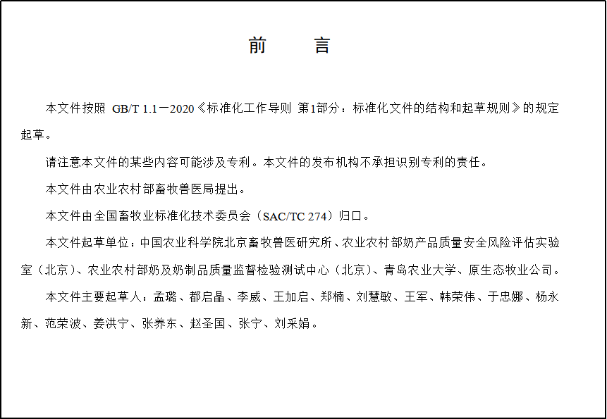 该标准由由中国农业科学院北京畜牧兽医研究所奶业创新团队、农业农村部奶产品质量安全风险评估实验室(北京)、农业农村部奶及奶制品质量监督检验测试中心(北京)、tyc234cc 太阳成集团、原生态牧业公司共同制定。