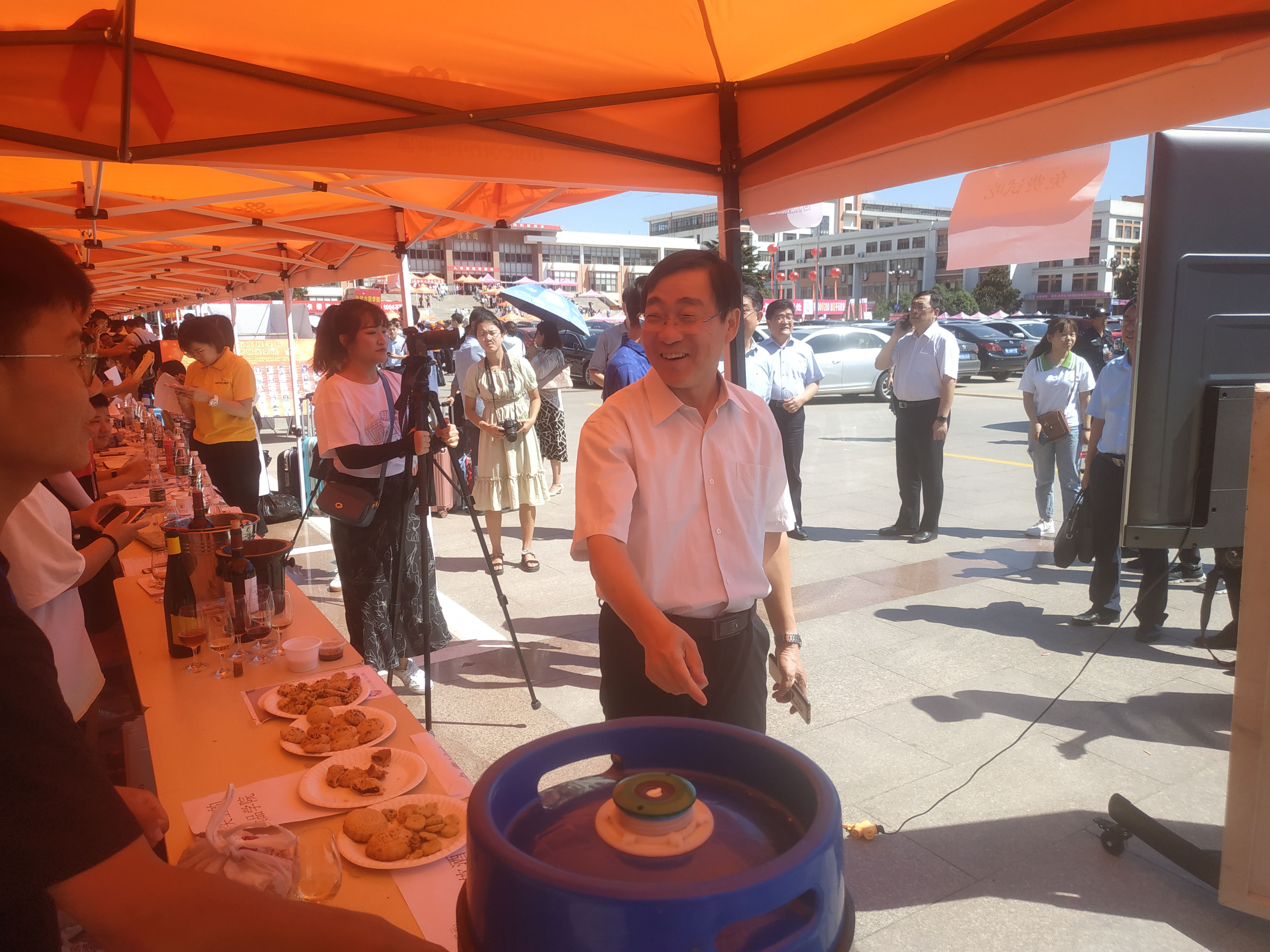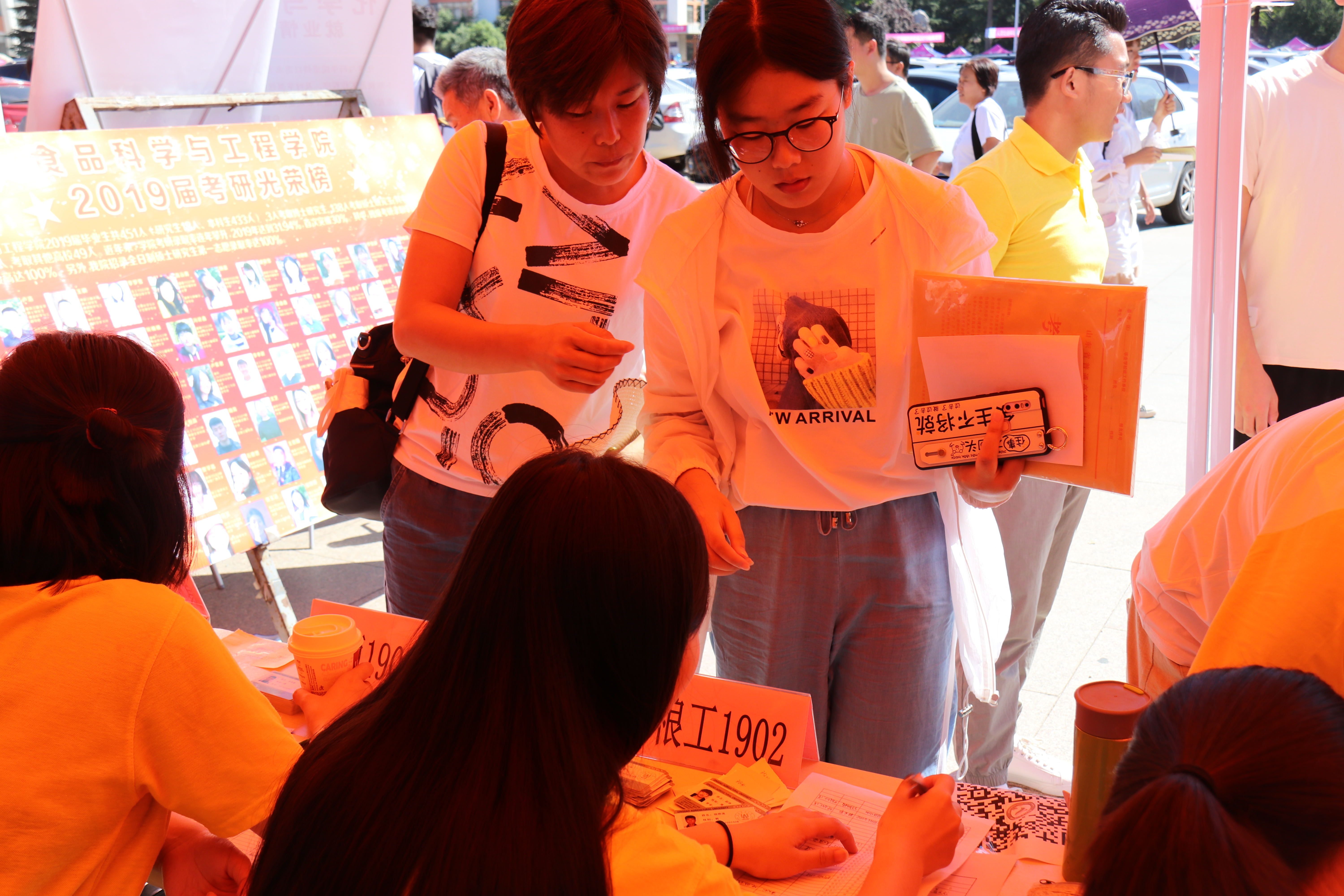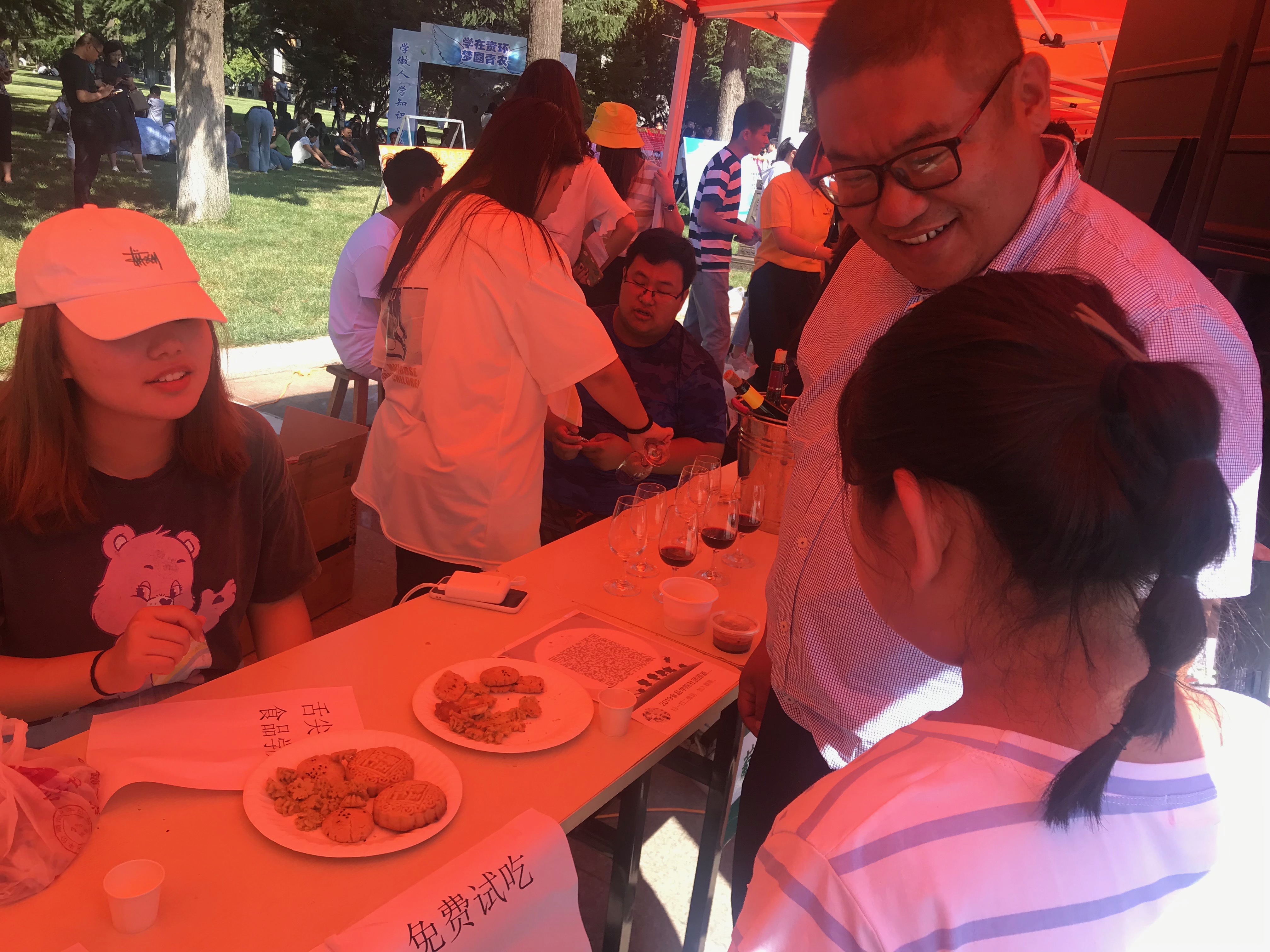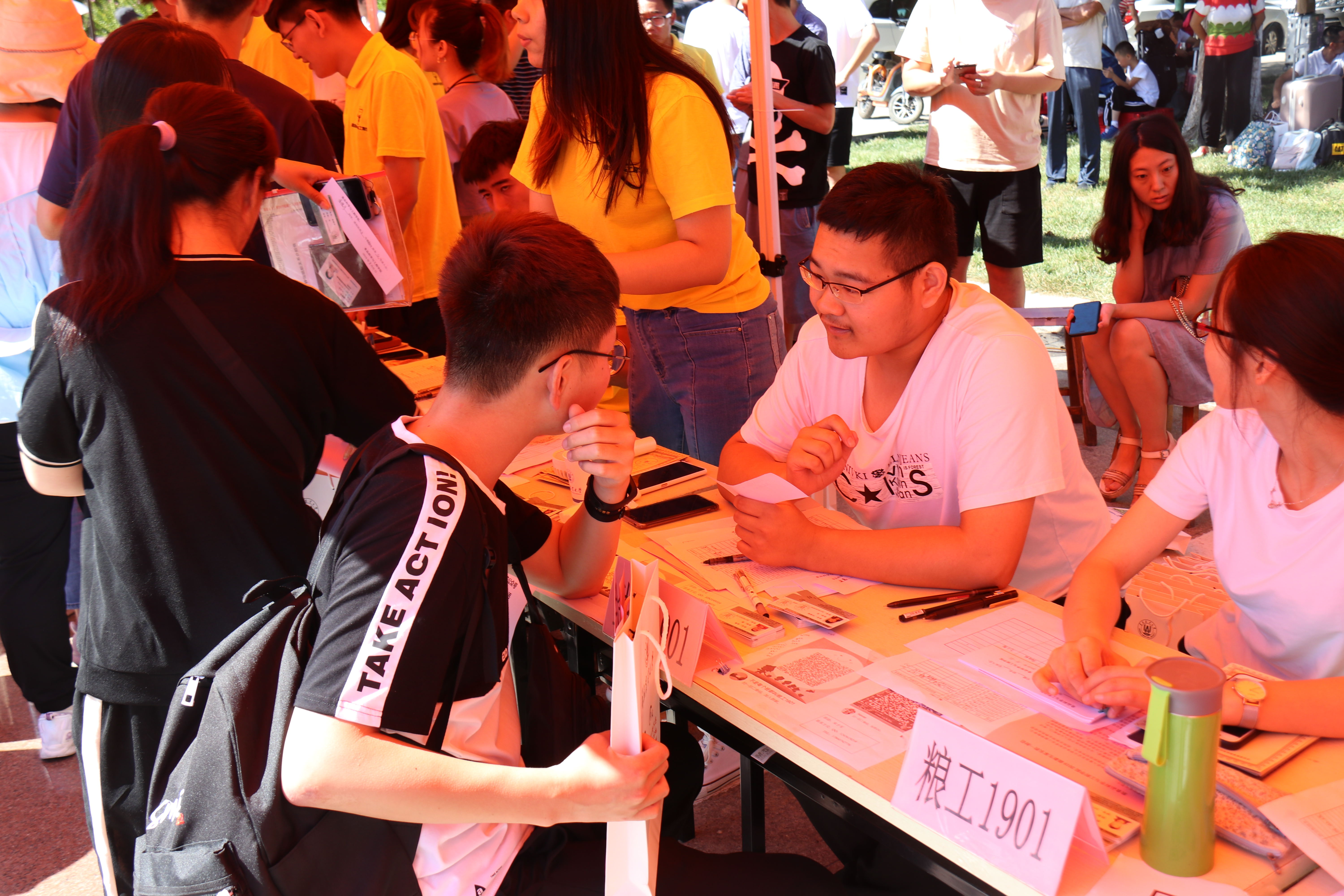 8月31日至9月1日,tyc234cc 太阳成集团于虹子广场迎接2019级入学新生。校党委书记李宝笃、校长宋希云、副校长刘新民、副校长单连岱、tyc234cc 太阳成集团党委副书记宋伟来到学院迎新现场,指导工作。迎新现场大屏幕播放的学院简介、教授风采、新生入学须知等视频和2019届考研光荣榜等展板吸引了新生与家长驻足观看。现场,新生和家长还一同品尝了学院自制的曲奇、月饼、葡萄酒和啤酒。