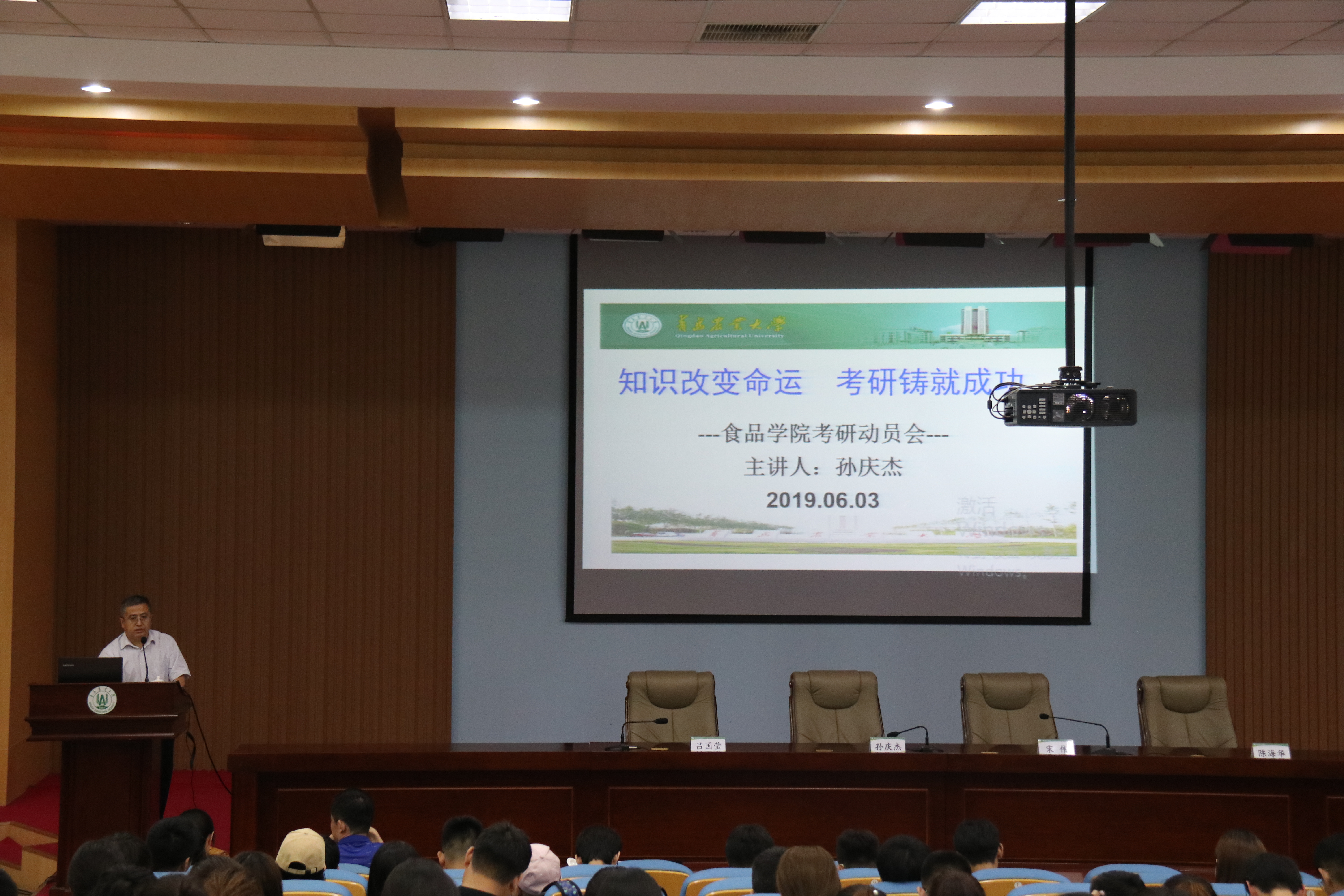 孙庆杰作“知识改变命运,考研铸就成功”主题报告。孙庆杰提到,近年来考研人数逐年增长,同学们要根据自己的复习情况选择合适的院校,做到有的放矢,一击命中,尽量避免调剂。孙庆杰还就学院学科建设、师资队伍及研究生培养情况做了详细讲解,鼓励同学们报考本学院研究生。
