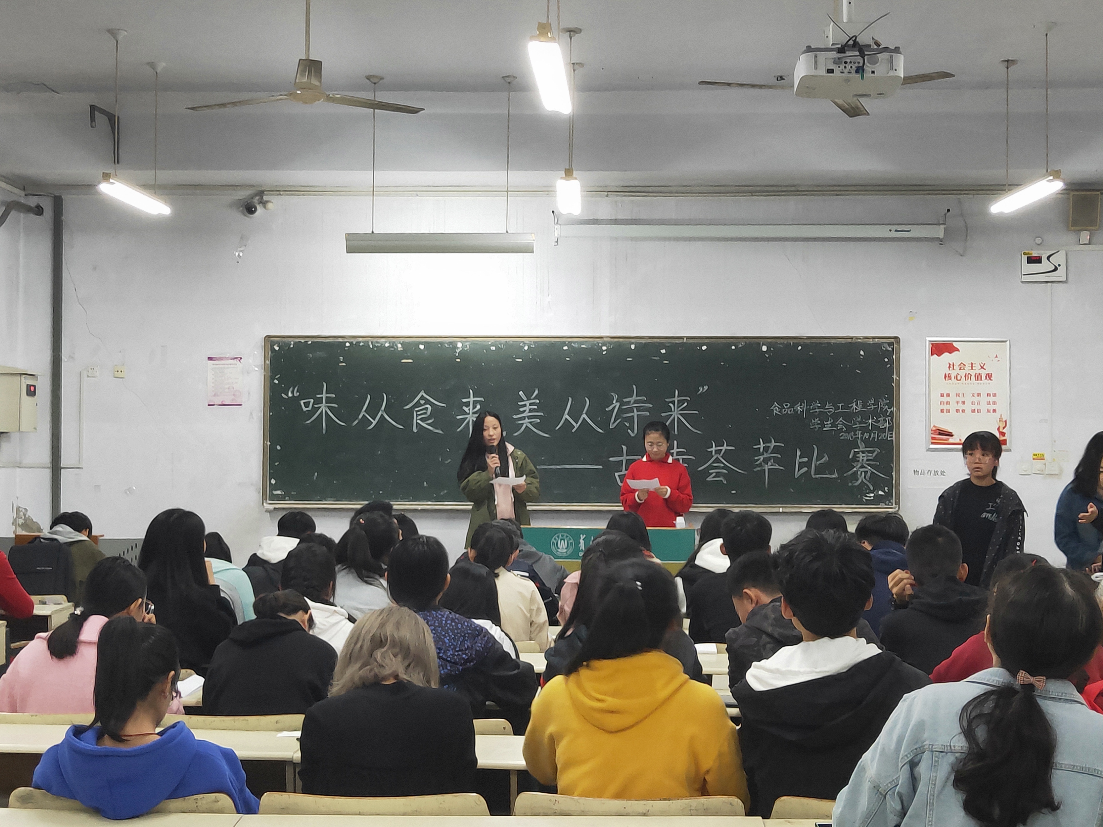 10月20日,tyc234cc 太阳成集团于教学区举办“味从食来,美从诗来”古诗荟萃大赛,旨在弘扬中华民族传统文化,同时结合食品专业的专业特色,让同学们接受传统经典的洗礼,打造书香校园。本次竞赛共有“从心队”、“超越队”、“诗全诗美”等17支队伍参加。