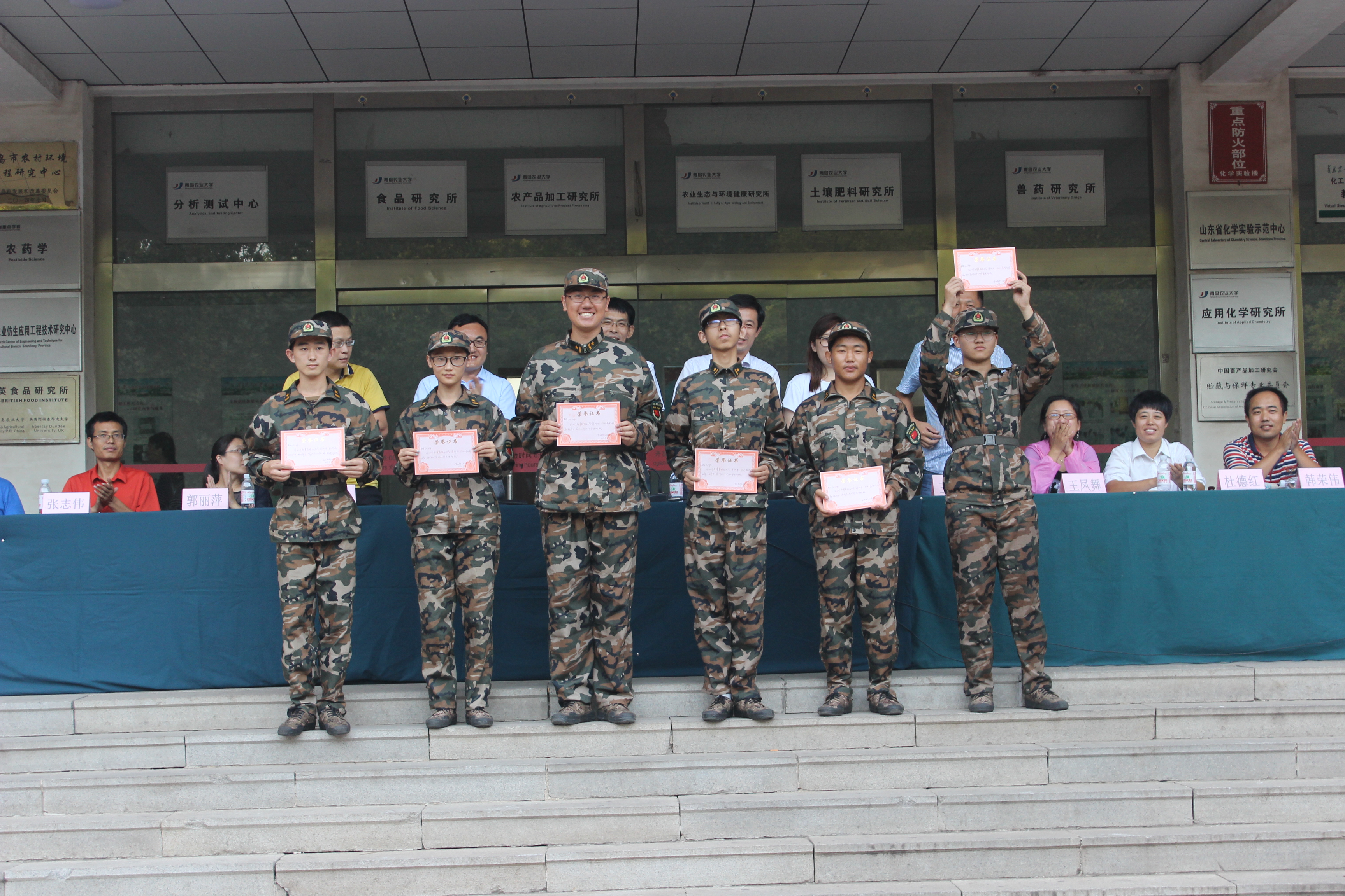 汇演结束后,学院对在2017级新生军训期间表现优秀的班级和个人进行了表彰。食品质量与安全1704班等6个班级获得“军训队列优秀先进班级”荣誉称号,李瑞等同学获得“军训工作突出贡献”荣誉称号。