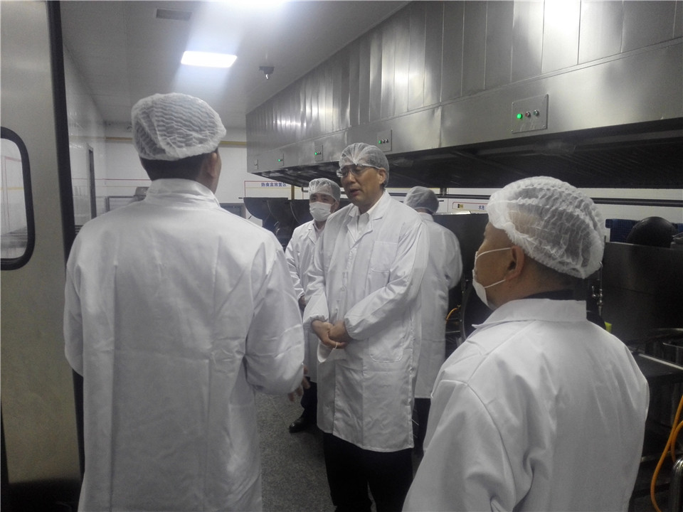 青康食品有限公司王文海董事长对王宝维一行的到来表示热烈欢迎。据悉,青岛青康食品有限公司成立于2008年,公司以配送安全、营养、原生态食品为理念,目前已打造成中国团膳品牌服务商,主要业务以净菜、面食、糕点、肉食、海鲜、调料、半成品加工配送、粮油配送为主。考察人员先后参观了公司的净菜加工车间、肉食加工车间、糕点加工车间,对公司一流的硬件设施,合理的车间布局、整洁和规范的加工工艺、绿色农产品生产基地建设和根据不同人群进行营养配餐等做法给予了高度评价。考察人员认真听取了公司的艰辛创业史和快速发展史,并对公司发展以食品安全始终放在第一位的理念与检测方法提出了中肯的建议。