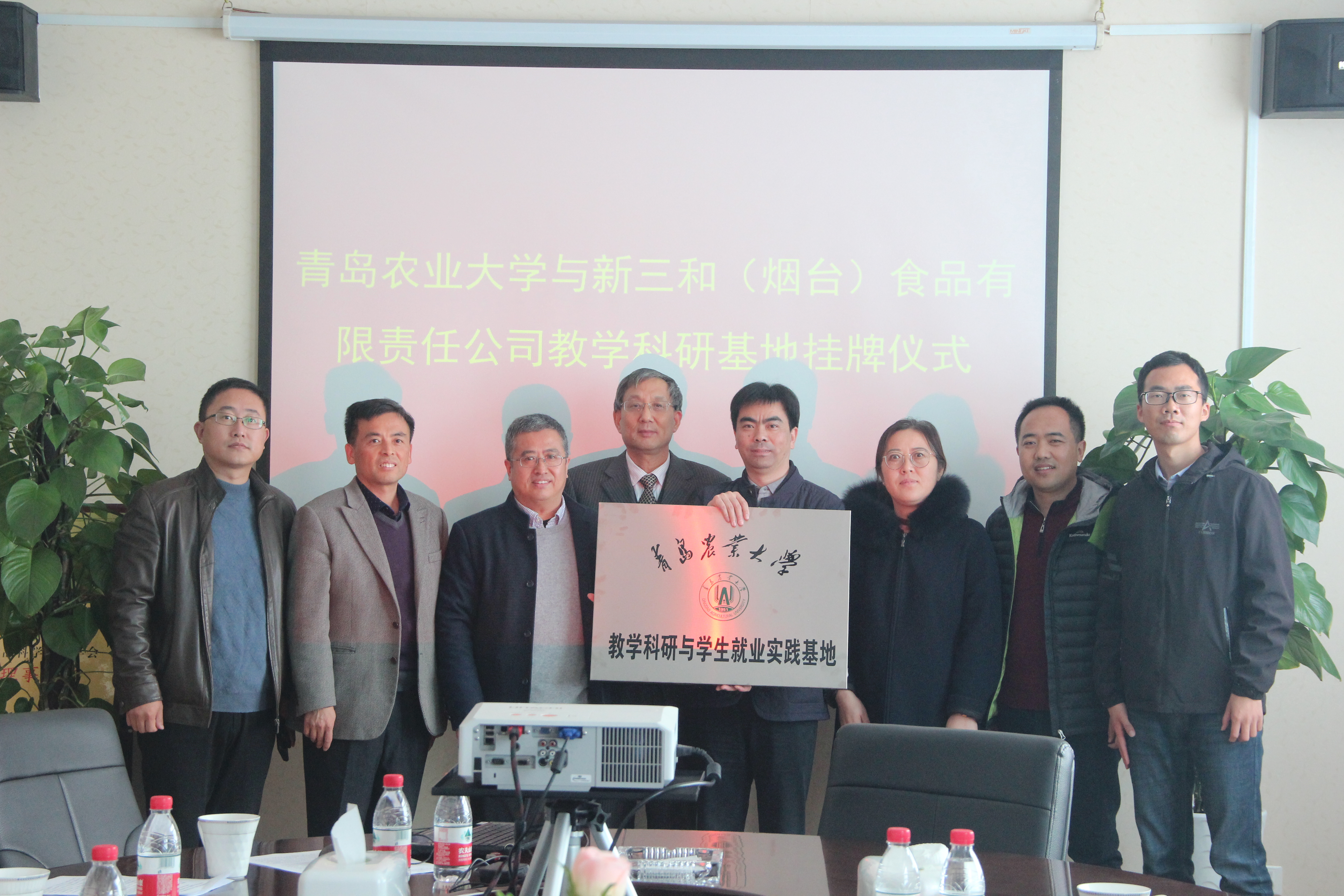 孙庆杰、王宝维、姚小军以及蓬莱市小门家镇党政领导共同为青岛市食品科学技术学会服务站、tyc234cc 太阳成集团教学科研与学生就业实践基地挂牌。孙庆杰表示,此次青岛农大tyc234cc 太阳成集团的专家教授服务团与新三和(烟台)食品有限责任公司进行实地对接,对推动校企之间科学技术交流和科技成果转化有重要意义,希望双方借此机会不断加深合作交流,让专家教授的科研成果落地开花。
