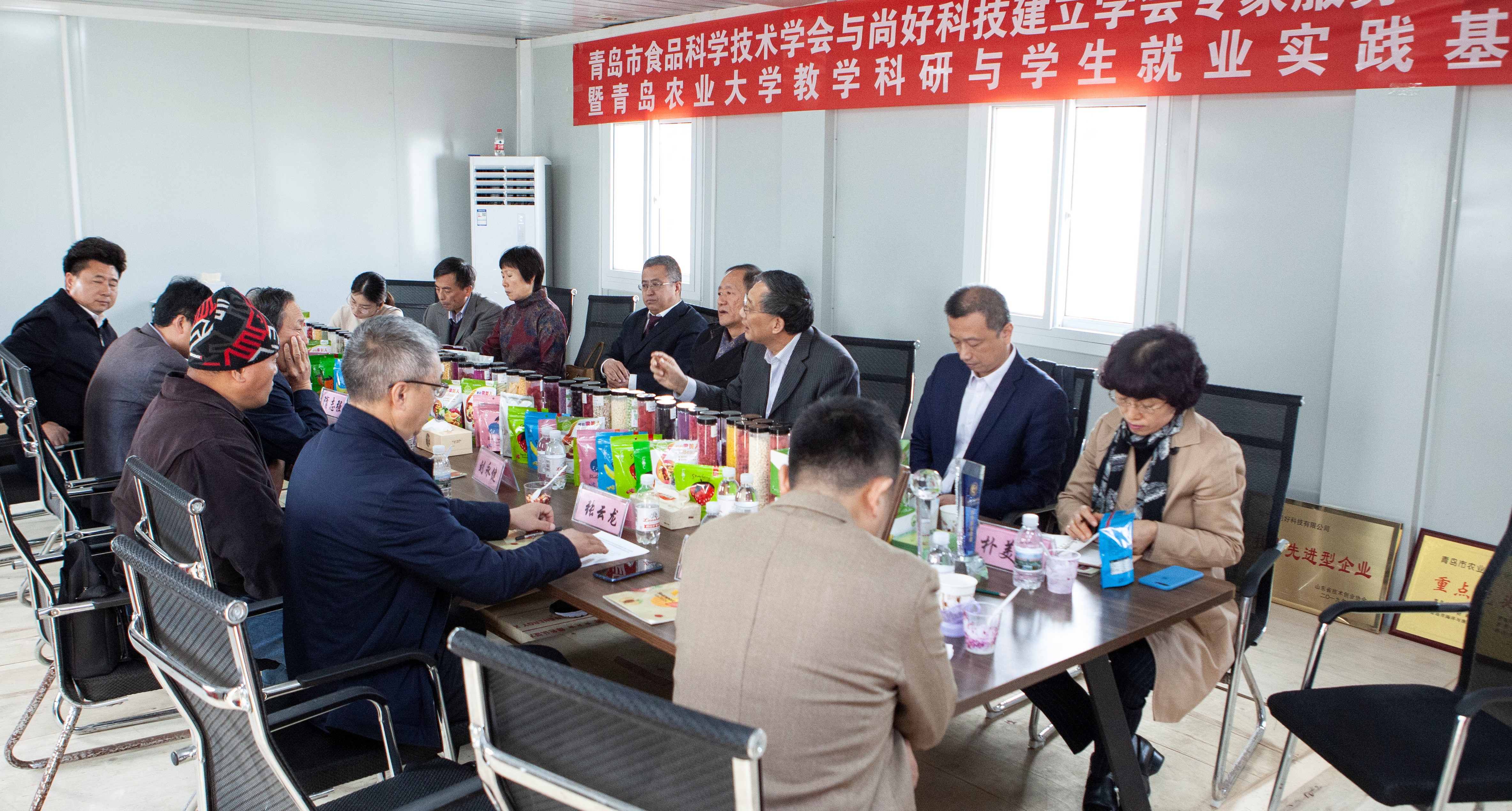 学院副院长孙庆杰、教授王宝维等七人组成的专家服务团与尚好科技有限公司等4家平度市食品加工企业代表开展座谈会,重点围绕果蔬营养与加工、食品安全生产控制等技术与企业进行了广泛交流。会议由孙庆杰主持。