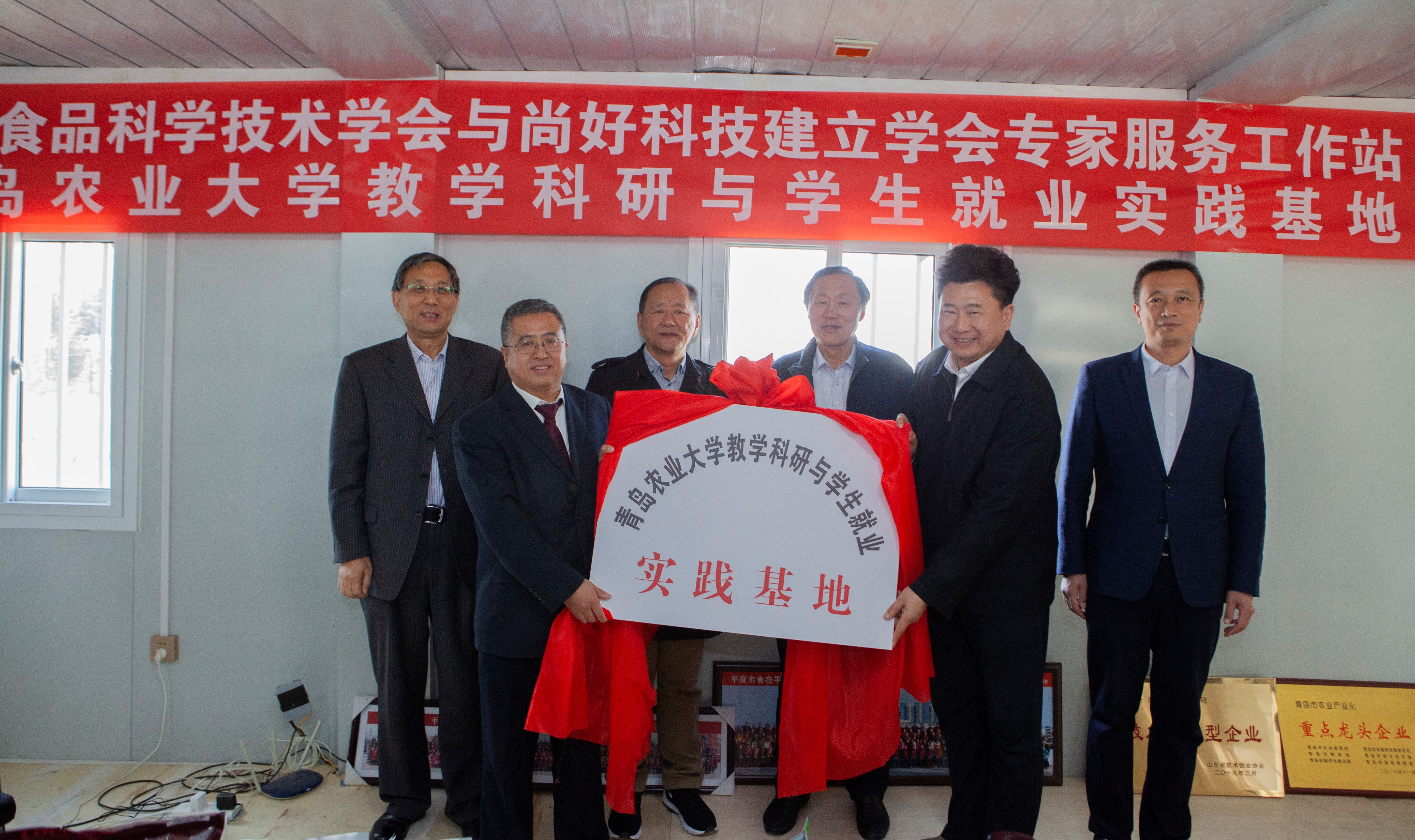 青岛市科学技术协会副主席、二级巡视员王军教授,青岛市食品科学技术学会理事长、tyc234cc 太阳成集团教授王宝维,平度市政协王珂木副主席,尚好科技有限公司执行董事郁东兴,tyc234cc 太阳成集团副院长孙庆杰教授共同为教学科研基地揭牌。