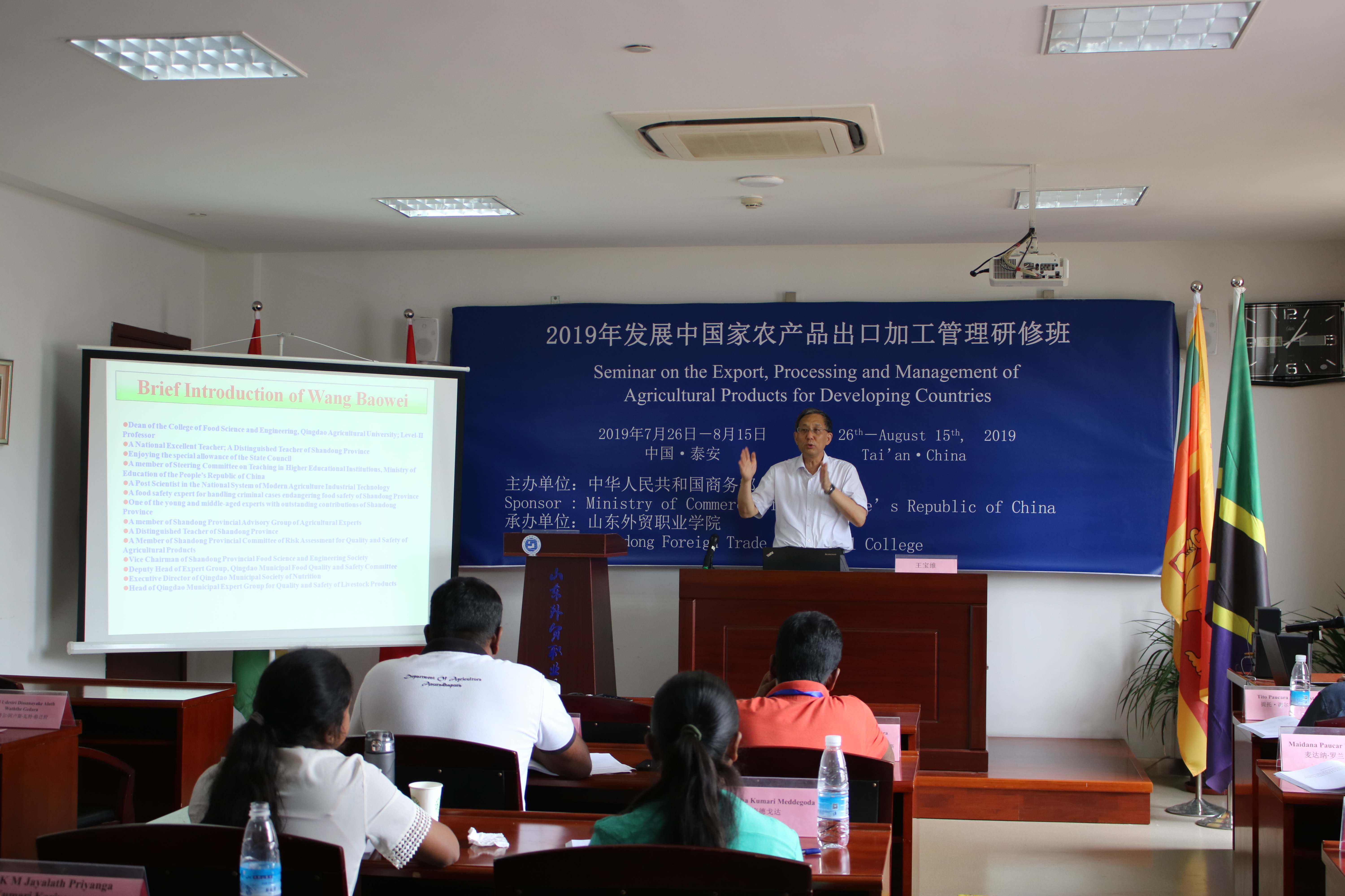 7月27日至8月1日,商务部分别在青岛、泰安两地举办了2019年苏丹农业和畜牧业质量控制、贸易和物流管理研修班和2019年发展中国家农产品出口加工管理研修班。两次培训班均邀请了国家现代农业产业技术体系岗位科学家、tyc234cc 太阳成集团王宝维教授为学员授课。