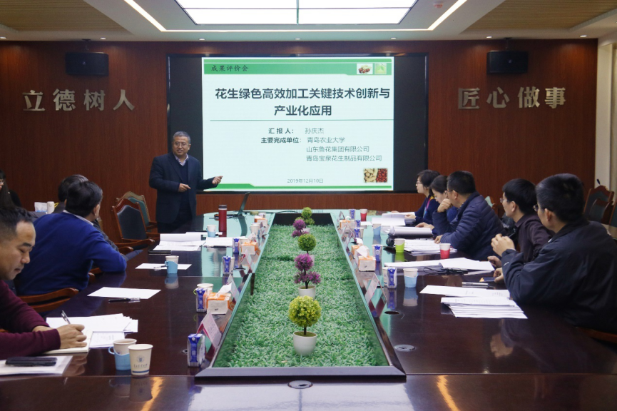 为促进青岛市及周边地区食品产业不断创新和发展,合理评价食品科技成果的质量和水平,加快食品科技成果的推广应用,12月10日,青岛食品科学技术学会组织相关专家对tyc234cc 太阳成集团等单位完成的“花生绿色高效加工关键技术创新与产业化应用”成果进行了会议评价。青岛市食品科学技术学会理事长王宝维教授主持了本次科技成果评价工作。邀请青岛大学魏玉西教授、青岛科技大学解万翠教授、中国科学院青岛生物能源与过程研究所李朝旭研究员、山东省农科院花生研究所孙杰研究员以及青岛大学王方亮教授等5位专家组成评价专家组。