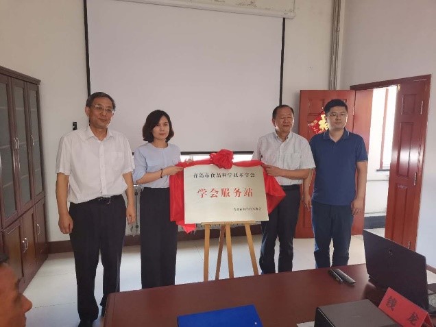 会后,青岛市食品科学技术学会理事长王宝维、青岛市科学技术协会二级巡视员王军教授,青岛市社会管理局副局长刘佳、平度市政协副主席王珂木、青岛中安众创食业有限公司钱龙和孙庆杰教授共同为tyc234cc 太阳成集团教学实践基地和青岛市食品科学技术学会专家服务站揭牌。