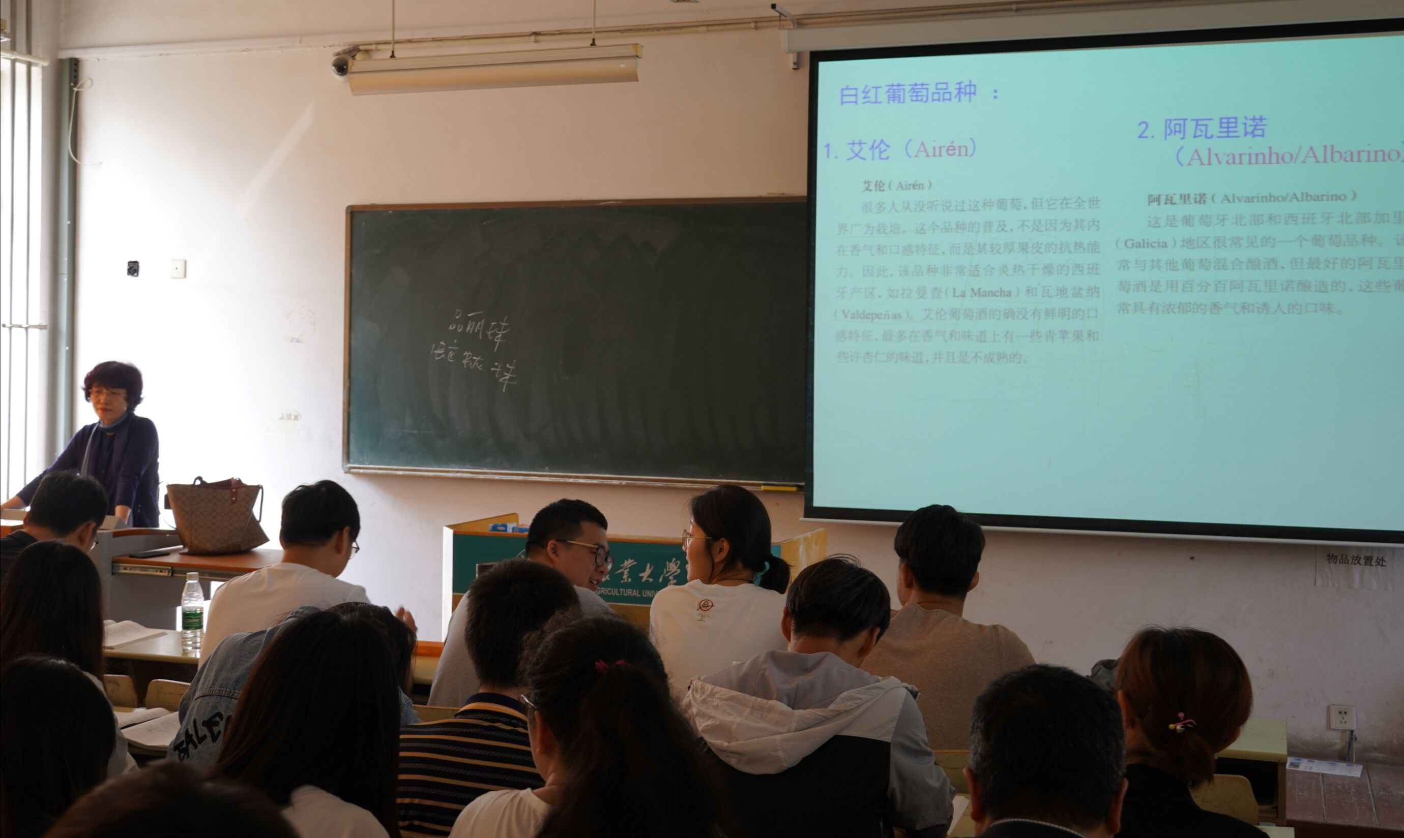 为进一步了解学院教学秩序和效果,学院领导老师走进课堂,与同学们一起听取了朴美子的《酿酒工艺学》和黄国清的《氨基酸工艺学》两堂课。课堂上,朴美子为同学们介绍了葡萄酒酿造的历史和葡萄酒的分类。此外,她还列举了很多葡萄种类并着重介绍了赤霞珠、西拉、霞多丽等几种典型葡萄品种;黄国清以谷氨酸发酵液的性质入手,讲解了几种提取谷氨酸的方法。课堂内容条理性强,教学设计循序渐进。同学们边听边记录,积极回答课堂问题,课堂井然有序。听课人员认真记录了教师的授课情况和课堂效果,并在课后与任课老师进行了沟通交流,提出了建议和意见。