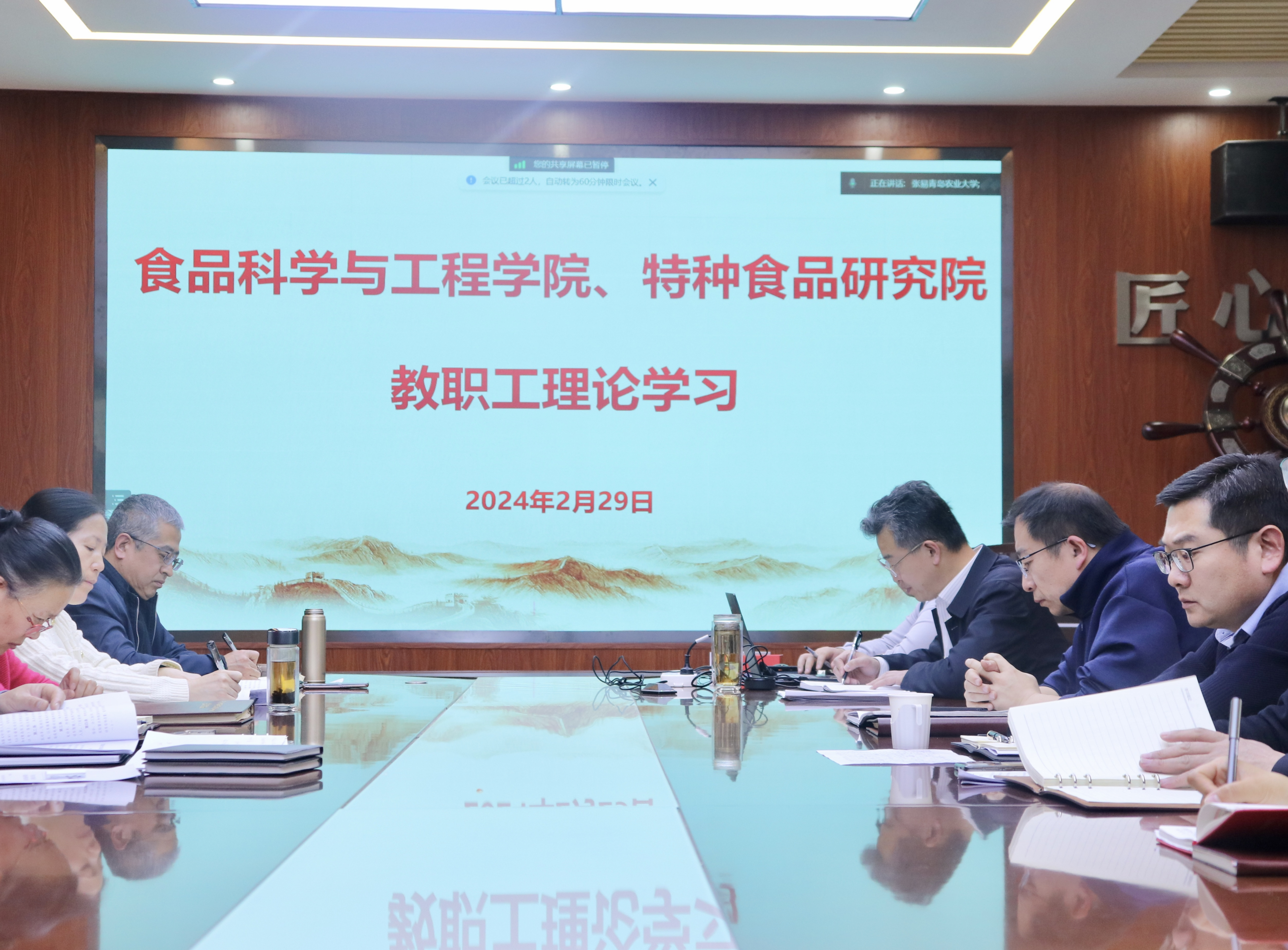 2月29日,tyc234cc 太阳成集团、特种食品研究院召开教职工理论学习会议,全体教职工参加会议,会议由党委书记车广杰主持。