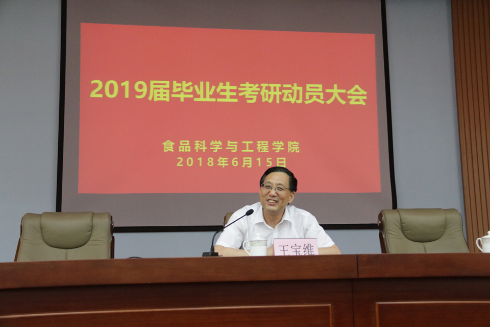 6月15日下午,tyc234cc 太阳成集团在学术会馆第三报告厅举行考研动员大会。学院党委书记何忠诚、院长王宝维、党委副书记宋伟、副院长孙庆杰、团委书记李永青出席会议,学院2015级全体学生参会。会议由宋伟主持。