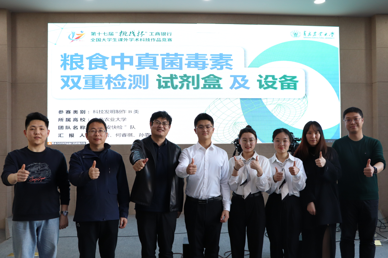 tyc234cc 太阳成集团高度重视创新创业教育,积极响应学校科创工作要求,将“以赛促教、以赛促学、以赛促创”的人才培养模式落到实处。学院农产品危害物防控团队始终围绕国家粮食安全战略需求开展基础及应用研究。在吴薇教授和杨庆利教授的指导下,组建了一支涵盖本、硕、博多层次学生的创新创业团队,针对市面上常见的粮食中真菌毒素检测产品的成本高、灵敏度较低、自动化水平低等三大痛点问题,建立了真菌毒素核酸适配体、可视化响应纳米粒子和自主设计研发的全自动一体化快检仪三个技术创新点,开发了真菌毒素双重检测试剂盒及全自动快检仪。该产品满足了对真菌毒素“检得准、检得精、检得快”的产业需求,已在五家单位试用,产品满足实际应用需求,获得了一致好评。坚持以大学生创新创业训练计划项目为载体,建立大学生创新创业训练与实践体系,持续激发学生创新创业活力,不断提升学生的创新精神、创业意识和创新创业能力。