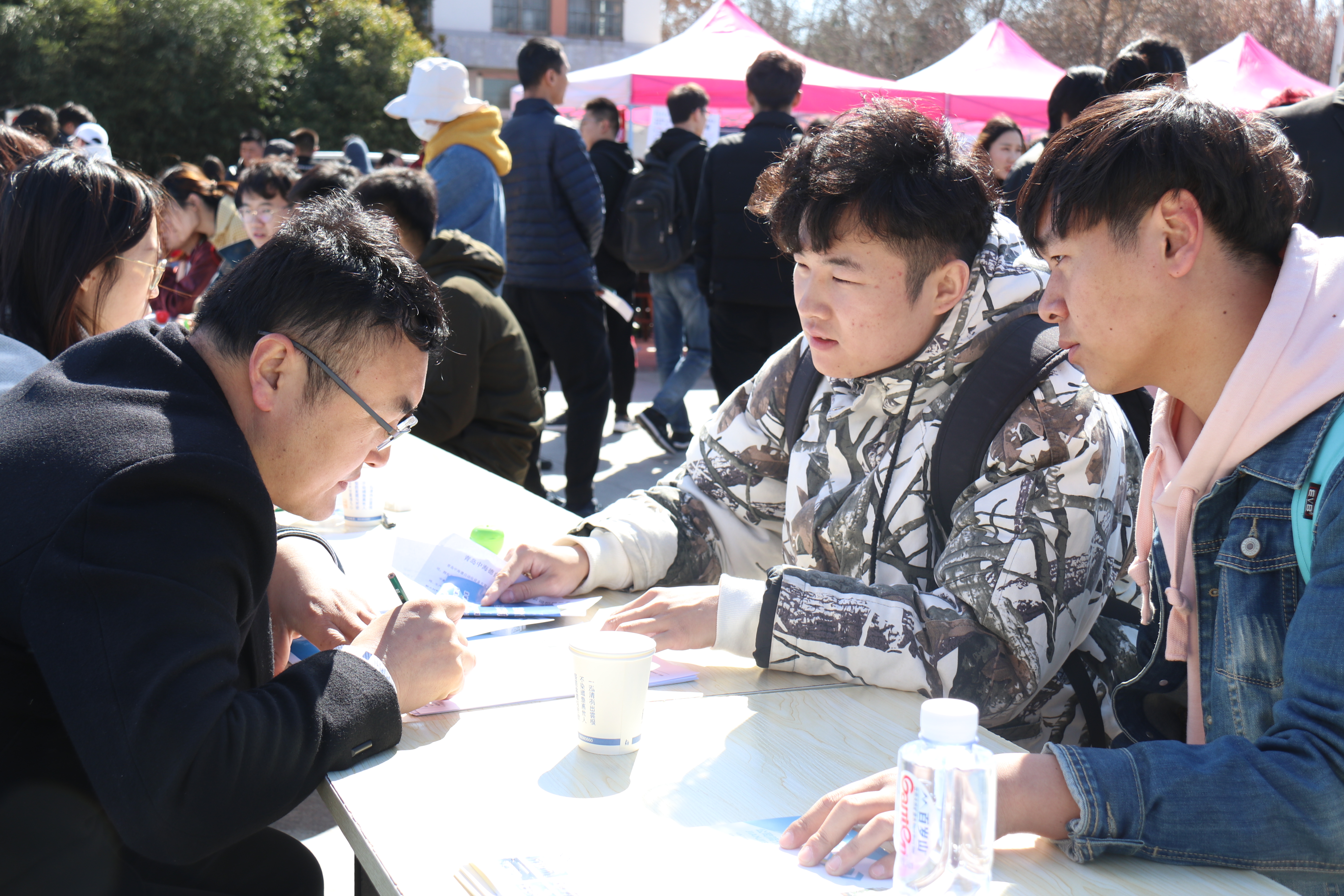3月30日,tyc234cc 太阳成集团于虹子广场举办2019届毕业生春季供需见面会。见面会共有720家企业参与招聘,吸引了数千名毕业生前来求职。tyc234cc 太阳成集团团委书记李永青,辅导员赵莹、江巧宁走进招聘会现场,指导毕业生就业。