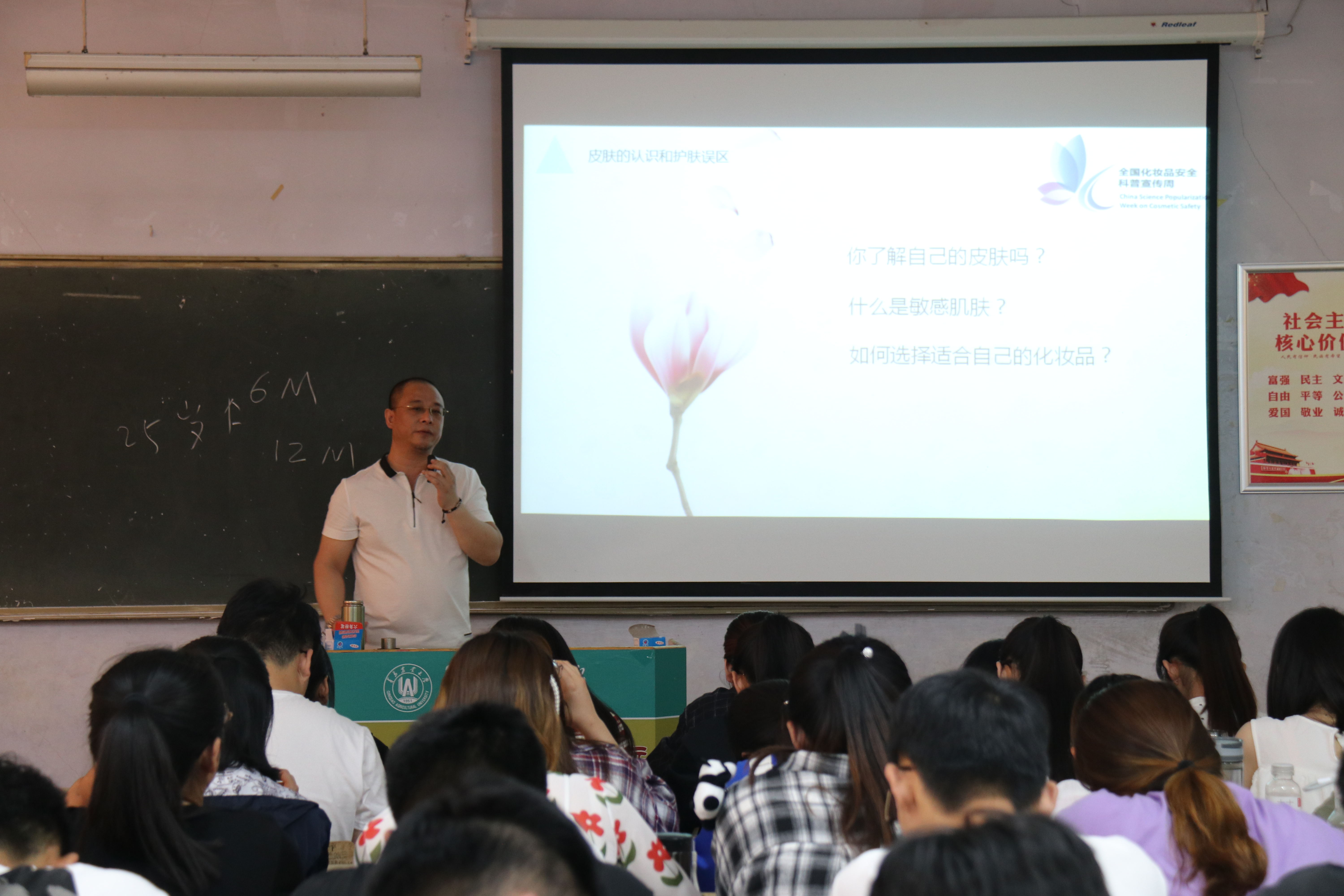 为增进同学们对化妆品安全知识的了解,进一步增强广大同学科学护肤、理性消费和安全用妆意识,5月22日下午,青岛市城阳区市场监督管理局和tyc234cc 太阳成集团于教学楼联合举办化妆品安全科普宣讲活动。