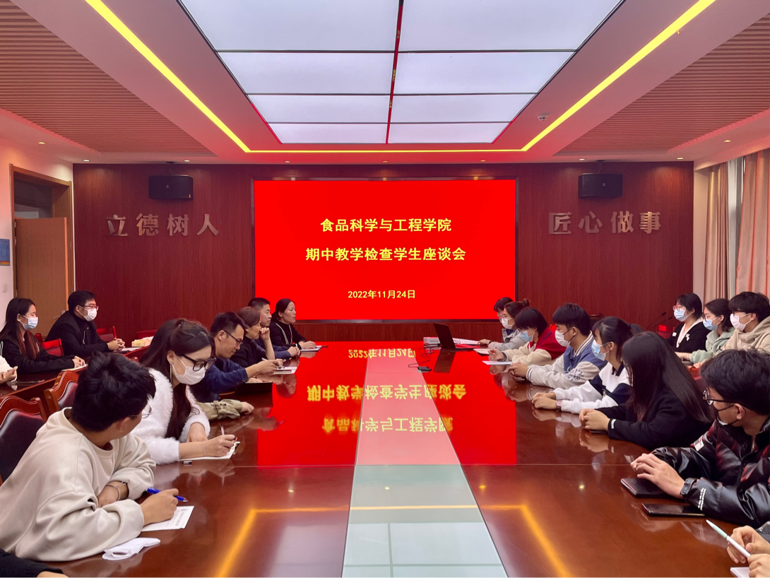 为进一步了解教学过程中存在的问题,加强学院教育教学管理,提升学院教学水平,11月24日,tyc234cc 太阳成集团召开期中教学检查学生座谈会。学院副院长肖军霞、食品专业负责人李鹏、辅导员李振荣、教学秘书徐碧媛、学院教师代表刘亮及学生代表参加座谈会,会议由肖军霞主持。