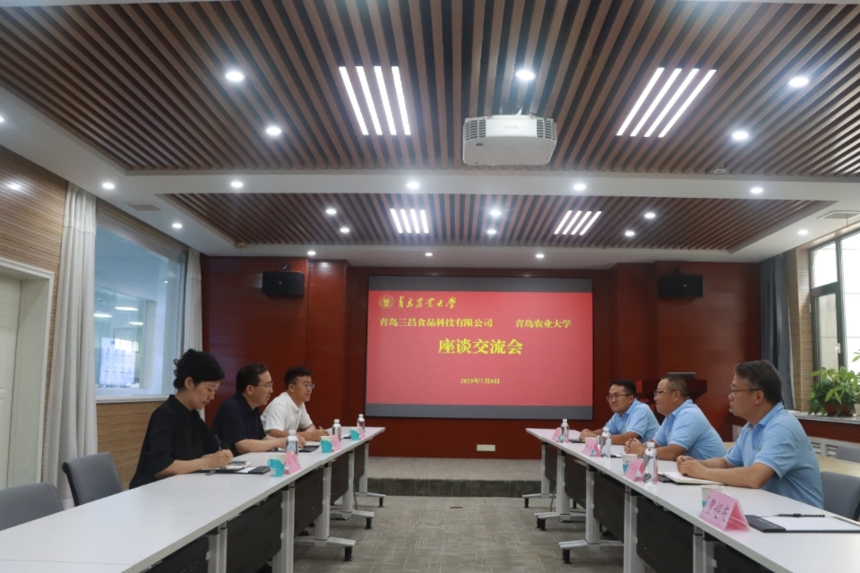 7月8日,青岛三昌食品科技有限公司董事长杨阳、总经理褚航等一行3人到访tyc234cc 太阳成集团,围绕深化校企合作、推进食品领域联合创新等开展实地考察和座谈交流。校党委副书记、校长赵金山会见杨阳一行,tyc234cc 太阳成集团党委书记、特种食品研究院副院长车广杰主持座谈会。