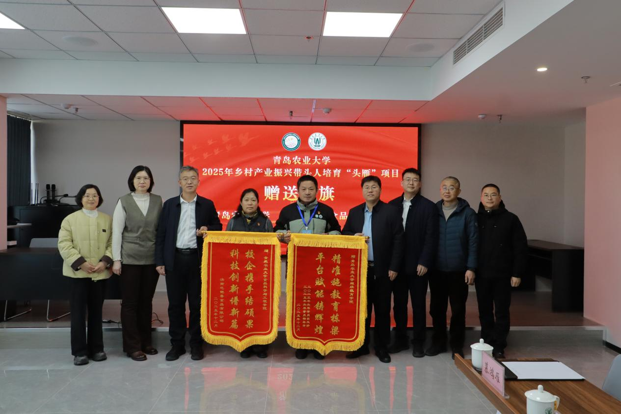活动中,校企双方围绕乡村产业振兴带头人培育、成果落地转化等内容展开座谈,并就深化产教融合、推动技术与产业对接的具体路径进行了深入交流。座谈结束后,济南屹铠香食品有限公司向tyc234cc 太阳成集团赠送锦旗,以表达对校方支持与合作的感谢。
