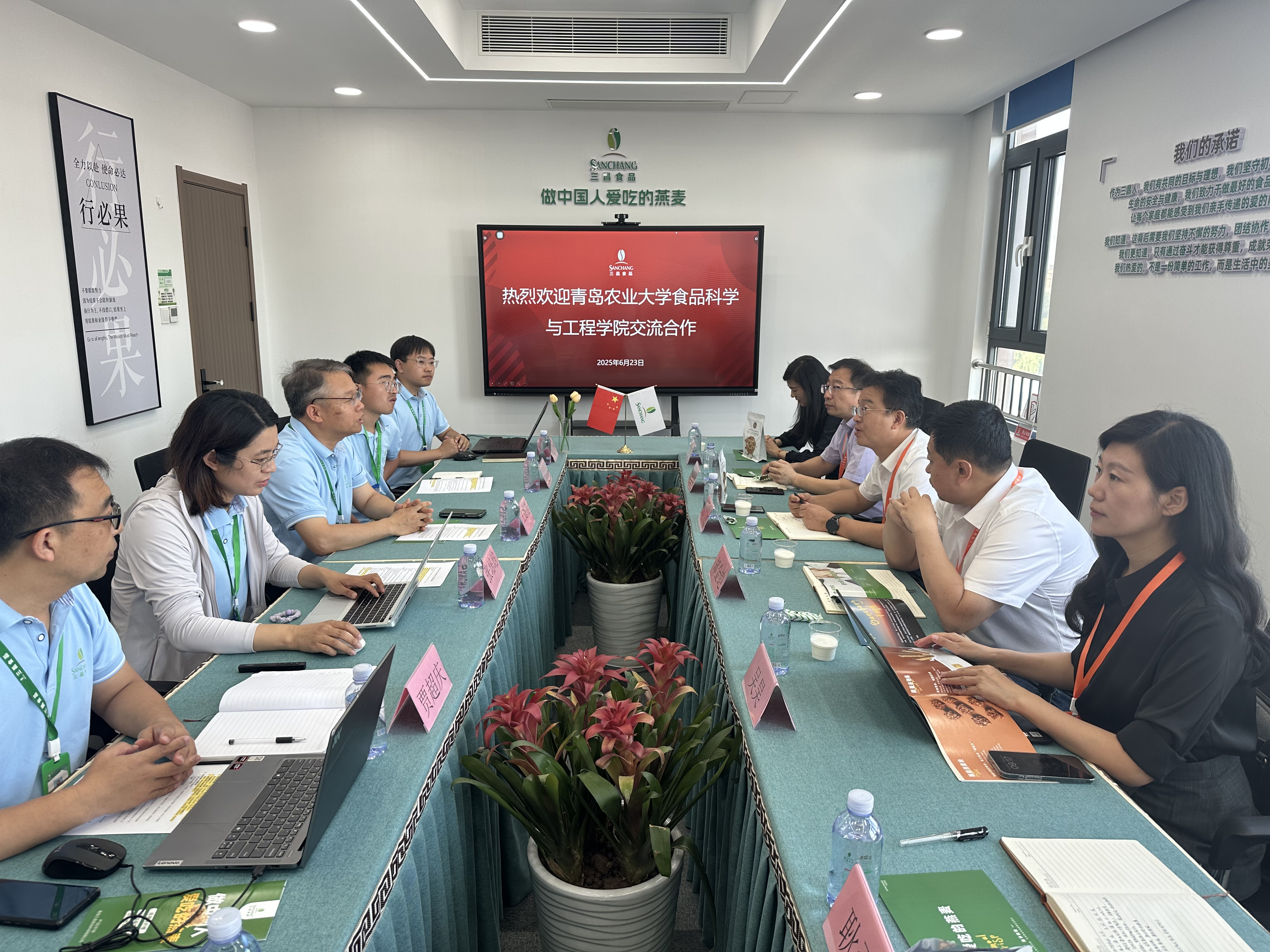 座谈会上,车广杰详细介绍了学院发展情况、人才培养以及毕业生就业等情况,希望双方积极探索更加务实有效的合作途径与方式,实现校企更高水平的合作共赢。公司运营副总经理王德浩对学院一行的到访表示热烈欢迎,并详细介绍了公司的发展历程、主营业务及未来规划。他表示,三昌食品作为一家专注于健康食品研发与生产的高新技术企业,高度重视技术创新与人才引进,期待与tyc234cc 太阳成集团在科研攻关、成果转化、实习实训等领域开展深度合作,共同培养符合行业需求的高素质应用型人才。随后,双方围绕产学研协同创新展开具体讨论。