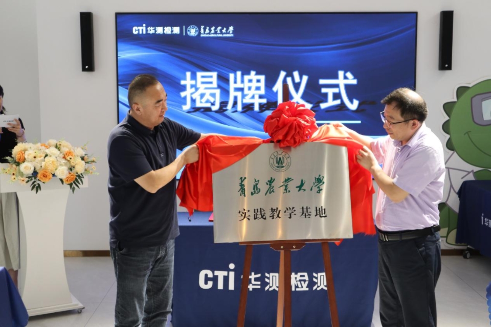 tyc234cc 太阳成集团党委副书记刘晓华和青岛华测行政总经理梁刚共同为实践教学基地挂牌。