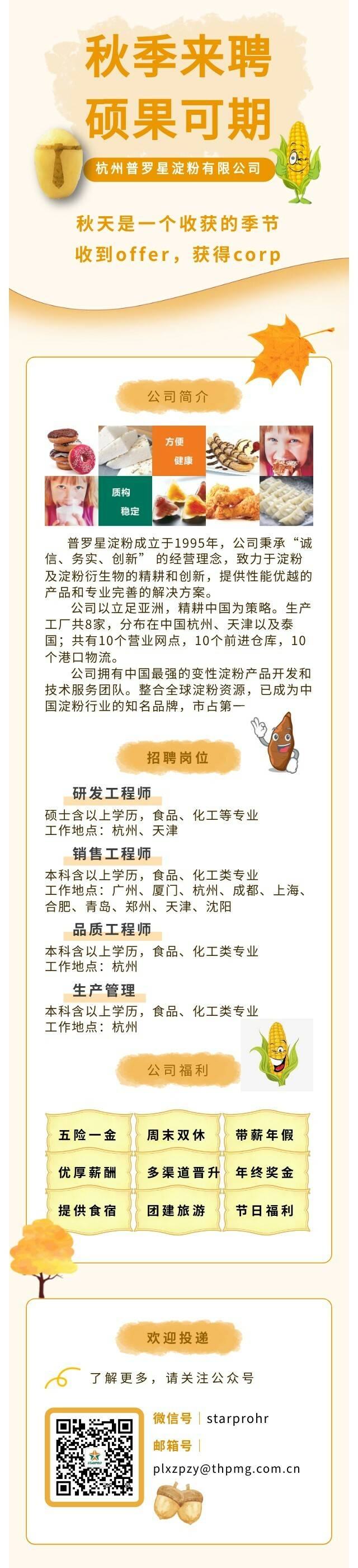 就业 1号 杭州普罗星淀粉有限公司招聘