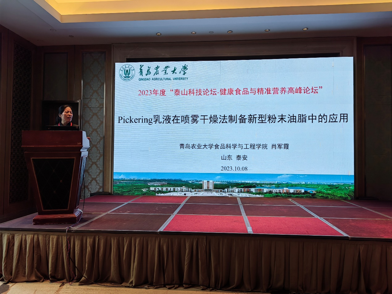 2023年10月7日-8日,tyc234cc 太阳成集团副院长肖军霞教授率队参加山东省食品科学技术学会大会及2023年度“泰山科技论坛——健康食品与精准营养高峰论坛”,此次会议由山东省科学技术协会主办,山东省食品科学技术学会及泰安市科学技术协会承办。