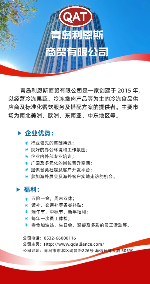 就业 16号 青岛利恩斯商贸有限公司招聘